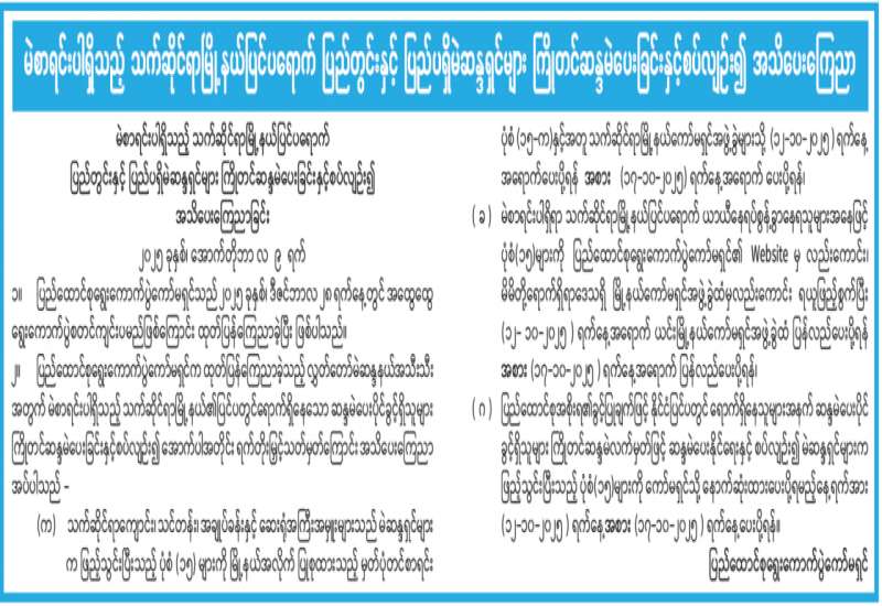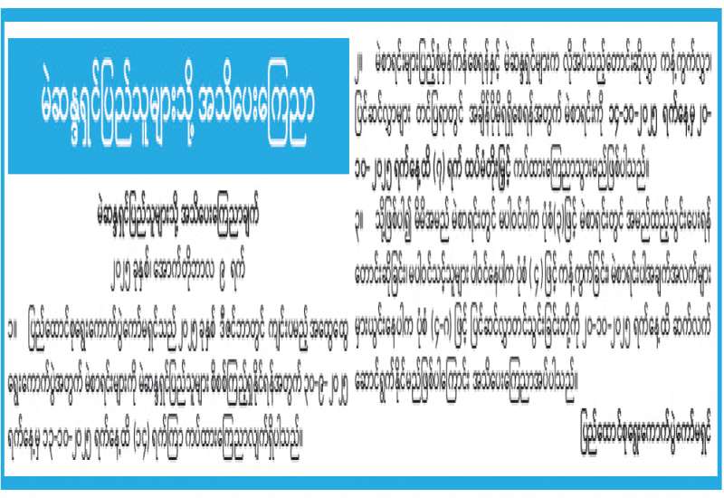 မဲဆန္ဒရှင် ပြည်သူများသို အသိပေးကြေညာ