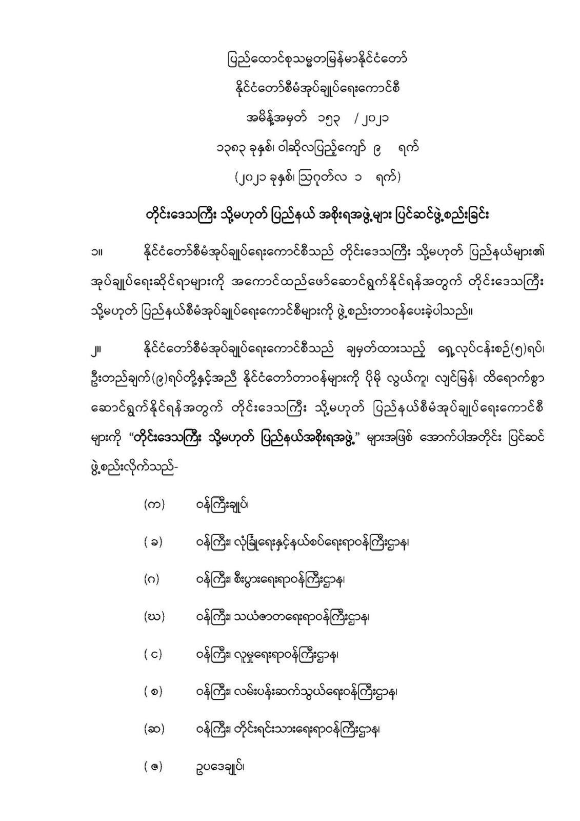 တိုင်းဒေသကြီးသို့မဟုတ် ပြည်နယ်အစိုးရအဖွဲ့များ ပြင်ဆင်ဖွဲ့စည်းခြင်း