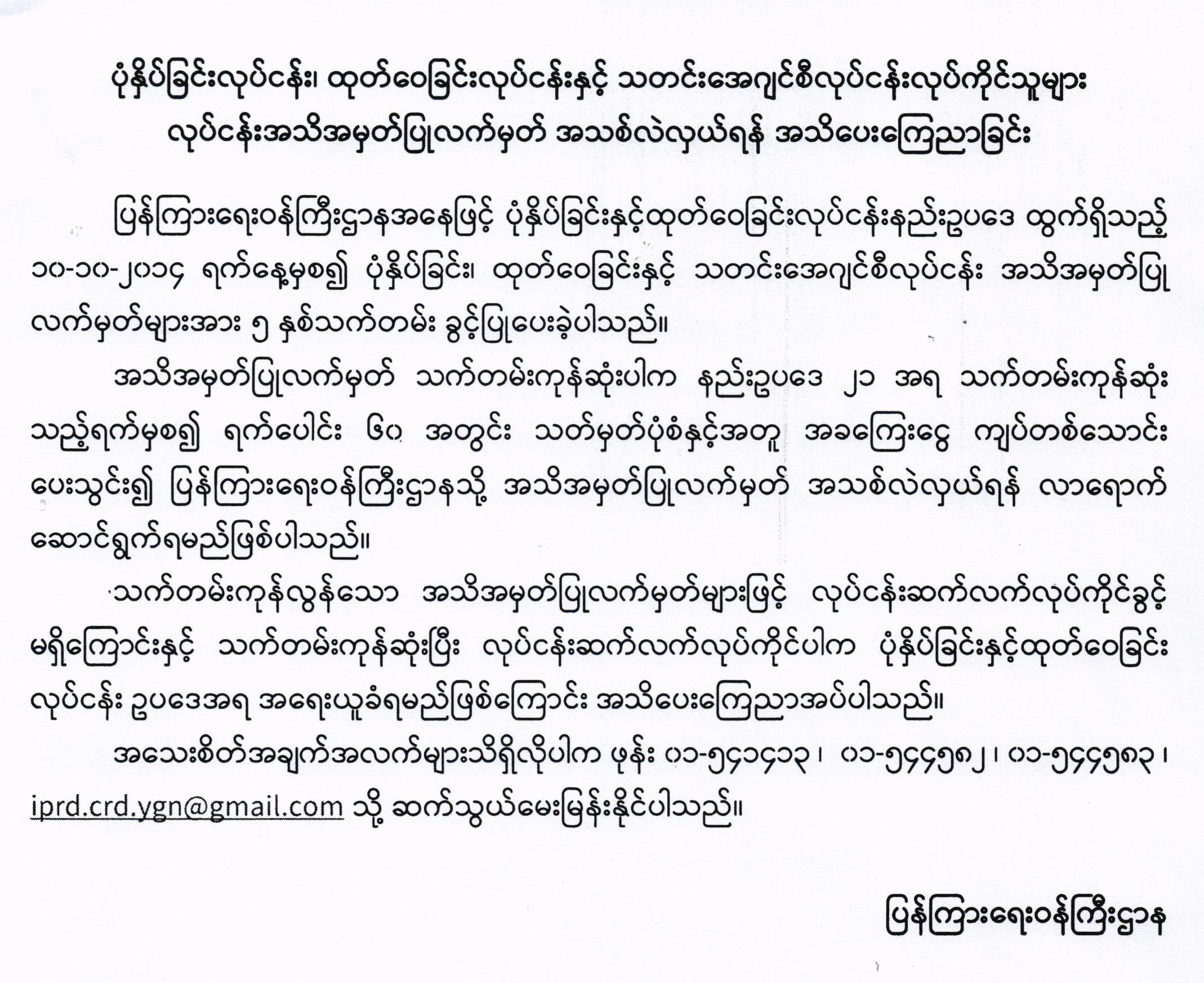 ပုံနှိပ်ခြင်းနှင့် ထုတ်ဝေခြင်းလုပ်ငန်းနှင့် သတင်းအေဂျင်စီလုပ်ငန်း လုပ်ကိုင်သူများ လုပ်ငန်းအသိအမှတ်ပြုလက်မှတ် အသစ်လဲလှယ်ရန် အသိပေးကြေညာခြင်း