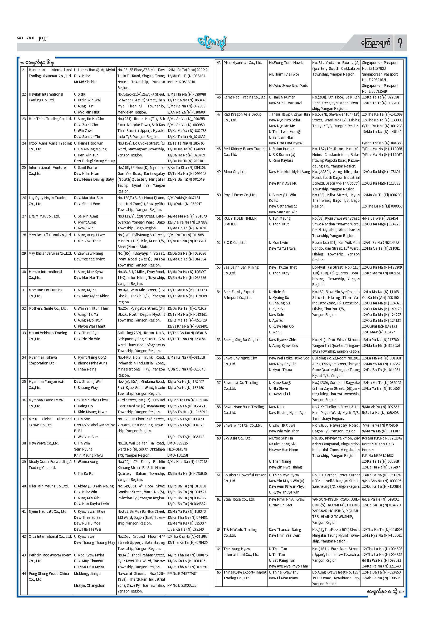 (ခ) ပြည်ထောင်စုသမ္မတမြန်မာနိုင်ငံ ကုန်သည်များနှင့်စက်မှုလက်မှုလုပ်ငန်းရှင်များ အသင်းချုပ်မှ ဆက်သွယ်ခေါ်ယူ စာရင်းရှင်းလင်းခြင်း၊