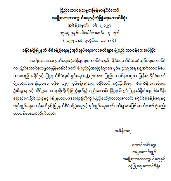 ခရိုင်နှင့် မြို့နယ် စီမံခန့်ခွဲရေးနှင့် အုပ်ချုပ်ရေးကော်မတီများ ဖွဲ့စည်းတာဝန်ပေးအပ်ခြင်း