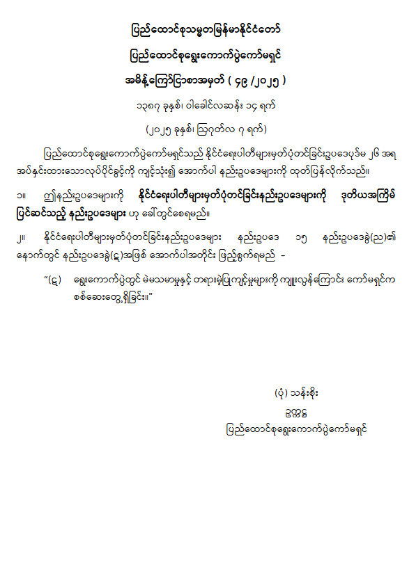 နိုင်ငံရေးပါတီများ မှတ်ပုံတင်ခြင်းနည်းဥပဒေများကို ဒုတိယအကြိမ် ပြင်ဆင်သည့် နည်းဥပဒေများ