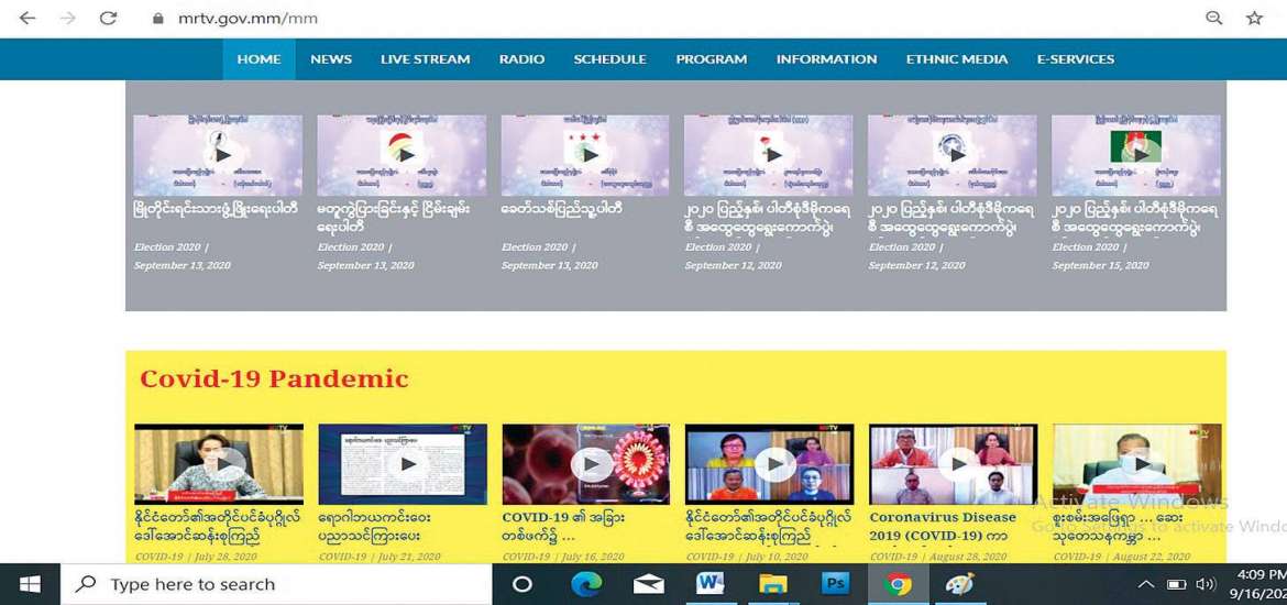 ပြန်ကြားရေးဝန်ကြီးဌာန၏ ကွပ်ကဲမှုဖြင့် အွန်လိုင်းပလက်ဖောင်းများမှတစ်ဆင့် ဒစ်ဂျစ်တယ် မီဒီယာကို သတင်းဌာန အသီးသီးက အကောင်အထည်ဖော် လျက်ရှိရာ ခိုင်မာမှန်ကန်၍ ဘက်မလိုက်မျှတသည့် သတင်းများ၊ ပညာပေးအစီအစဉ်များနှင့် သုတရသများစွာကို အွန်လိုင်းမှတစ်ဆင့် အသုံးပြုသူများထံ အရောက်တင်ဆက်နေပြီ ဖြစ်ပါကြောင်း။ ။