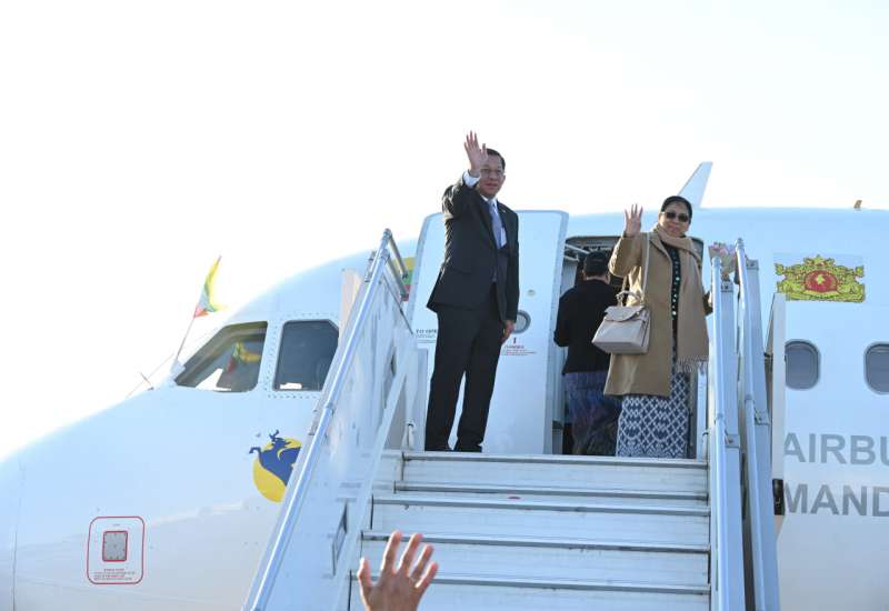 ရုရှားဖက်ဒရေးရှင်းနိုင်ငံတွင် ကျင်းပပြုလုပ်ခဲ့သော ၁၉၄၁-၁၉၄၅ မဟာမျိုးချစ်စစ်ပွဲကြီးအောင်ပွဲ နှစ် (၈၀) ပြည့်အထိမ်းအမှတ် စစ်ရေးပြအခမ်းအနားသို့တက်ရောက်ခဲ့သည့် နိုင်ငံတော်စီမံအုပ်ချုပ်ရေးကောင်စီဥက္ကဋ္ဌ နိုင်ငံတော်ဝန်ကြီးချုပ် ဗိုလ်ချုပ်မှူးကြီး မင်းအောင်လှိုင် ဦးဆောင်သည့် မြန်မာအဆင့်မြင့် ကိုယ်စားလှယ်အဖွဲ့ဝင်များသည် ယနေ့နံနက်ပိုင်းတွင် ရုရှားဖက်ဒရေးရှင်းနိုင်ငံ မော်စကိုမြို့ရှိ ဘနူကာဘာ အပြည်ပြည်ဆိုင်ရာလေဆိပ်မှ ပြည်ထောင်စုသမ္မတမြန်မာနိုင်ငံတော်သို့ အထူးလေယာဉ်ဖြင့် ပြန်လည်ထွက်ခွာရာ ရုရှားဖက်ဒရေးရှင်းနိုင်ငံ နိုင်ငံခြားရေးဝန်ကြီးဌာန အစိုးရပရိုတိုကောဌာန၏ ညွှန်ကြားရေးမှူးနှင့် တာဝန်ရှိသူများ၊ ရုရှားဖက်ဒရေးရှင်းနိုင်ငံဆိုင်ရာ မြန်မာနိုင်ငံ သံအမတ်ကြီး ဦးသစ်လင်းအုန်း၊ မြန်မာစစ်သံ (ကြည်း၊ ရေ၊ လေ) ဗိုလ်မှူးချုပ် ကျော်စိုးဦးနှင့် တာဝန်ရှိသူများက လေဆိပ်တွင် လိုက်လံပို့ဆောင်နှုတ်ဆက်ကြသည်။
