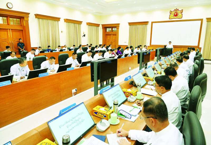 နိုင်ငံတော်စီမံအုပ်ချုပ်ရေးကောင်စီအစိုးရအဖွဲ့ လုပ်ငန်းညှိနှိုင်းအစည်းအဝေးကို ယနေ့နံနက်ပိုင်းတွင် နေပြည်တော်ရှိ နိုင်ငံတော်စီမံအုပ်ချုပ်ရေးကောင်စီဥက္ကဋ္ဌရုံး အစည်းအဝေးခန်းမ၌ ကျင်းပရာ နိုင်ငံတော်စီမံအုပ်ချုပ်ရေးကောင်စီဥက္ကဋ္ဌ နိုင်ငံတော်ဝန်ကြီးချုပ် ဗိုလ်ချုပ်မှူးကြီး မင်းအောင်လှိုင် တက်ရောက်အမှာစကား ပြောကြားသည်။