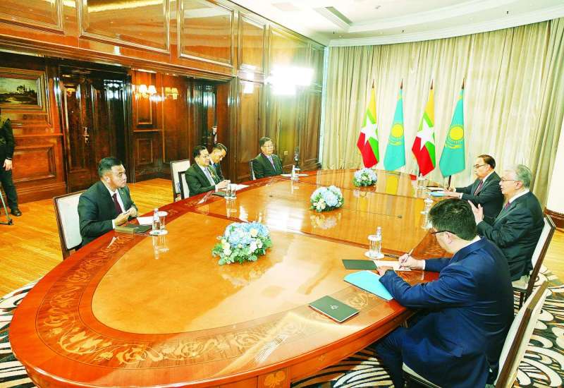 ရုရှားဖက်ဒရေးရှင်းနိုင်ငံတွင် ကျင်းပပြုလုပ်မည့် ၁၉၄၁-၁၉၄၅ မဟာမျိုးချစ်စစ်ပွဲကြီးအောင်ပွဲ နှစ်(၈၀)ပြည့်အထိမ်းအမှတ် စစ်ရေးပြအခမ်းအနားသို့ တက်ရောက်ရန်အတွက် မော်စကိုမြို့သို့ ရောက်ရှိနေသည့် နိုင်ငံတော်စီမံအုပ်ချုပ်ရေးကောင်စီဥက္ကဋ္ဌ နိုင်ငံတော်ဝန်ကြီးချုပ် ဗိုလ်ချုပ်မှူးကြီး မင်းအောင်လှိုင်သည် ယနေ့ဒေသစံတော်ချိန် ညနေပိုင်းတွင် ကာဇတ်စတန်နိုင်ငံသမ္မတ H.E.Mr. Kassym-Jomart Tokayev နှင့် Ritz Carlton ဟိုတယ်၌ တွေ့ဆုံဆွေးနွေးသည်။