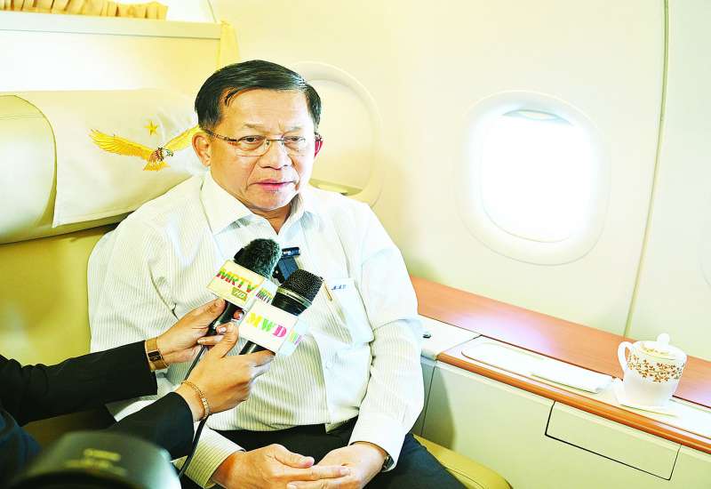 ရုရှားဖက်ဒရေးရှင်းနိုင်ငံတွင် ကျင်းပပြုလုပ်ခဲ့သော ၁၉၄၁-၁၉၄၅ မဟာမျိုးချစ်စစ်ပွဲကြီးအောင်ပွဲ နှစ် (၈၀) ပြည့်အထိမ်းအမှတ် စစ်ရေးပြအခမ်းအနားသို့ တက်ရောက်ခဲ့သည့် နိုင်ငံတော်စီမံအုပ်ချုပ်ရေးကောင်စီဥက္ကဋ္ဌ နိုင်ငံတော်ဝန်ကြီးချုပ် ဗိုလ်ချုပ်မှူးကြီး မင်းအောင်လှိုင်ဦးဆောင်သည့် မြန်မာအဆင့်မြင့်ကိုယ်စားလှယ်အဖွဲ့ဝင်များသည် ယနေ့နံနက်ပိုင်းတွင် ရုရှားဖက်ဒရေးရှင်းနိုင်ငံ၊ မော်စကိုမြို့ရှိ ဘနူကာဘာအပြည်ပြည်ဆိုင်ရာလေဆိပ်မှ နိုဗာစီဗစ်မြို့သို့ အထူးလေယာဉ်ဖြင့်ထွက်ခွာရာ ရုရှားဖက်ဒရေးရှင်းနိုင်ငံ၊ နိုင်ငံခြားရေးဝန်ကြီးဌာန ဒုတိယဝန်ကြီး Mr. Andrey Rudenko နှင့် တာဝန်ရှိသူများ၊ ရုရှားဖက်ဒရေးရှင်းနိုင်ငံဆိုင်ရာ မြန်မာနိုင်ငံသံအမတ်ကြီး ဦးသစ်လင်းအုန်း၊ မြန်မာစစ်သံ (ကြည်း၊ ရေ၊ လေ) ဗိုလ်မှူးချုပ်ကျော်စိုးဦးနှင့် တာဝန်ရှိသူများက လေဆိပ်တွင် လိုက်လံပို့ဆောင်နှုတ်ဆက်ကြသည်။