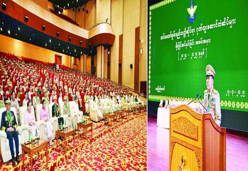 မြန်မာနိုင်ငံစစ်မှုထမ်းဟောင်းအဖွဲ့ အထူးညီလာခံ(၂၀၂၅)ကို ယနေ့နံနက်ပိုင်းတွင် နေပြည်တော်ကောင်စီနယ်မြေ၊ ဒက္ခိဏသီရိမြို့နယ်၊ မြန်မာနိုင်ငံစစ်မှုထမ်းဟောင်းအဖွဲ့ ဗဟိုဌာနချုပ်ရှိ ညီလာခံခန်းမ၌ကျင်းပရာ မြန်မာနိုင်ငံစစ်မှုထမ်းဟောင်းအဖွဲ့နာယက နိုင်ငံတော်စီမံအုပ်ချုပ်ရေးကောင်စီဥက္ကဋ္ဌ တပ်မတော်ကာကွယ်ရေးဦးစီးချုပ် ဗိုလ်ချုပ်မှူးကြီး မင်းအောင်လှိုင် တက်ရောက်မိန့်ခွန်းပြောကြားသည်။