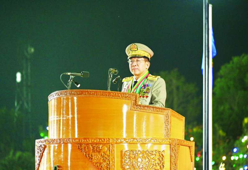 တပ်မတော်စွမ်းရည်သတ္တိဆိုင်ရာ ဂုဏ်ထူးဆောင်တံဆိပ်များ ချီးမြှင့်အပ်နှင်းခြင်းအခမ်းအနားကို ယနေ့မွန်းလွဲပိုင်းတွင် နေပြည်တော်ရှိ ဇေယျာသီရိဗိမာန်၌ ကျင်းပပြုလုပ်ရာ နိုင်ငံတော်စီမံအုပ်ချုပ်ရေးကောင်စီဥက္ကဋ္ဌ တပ်မတော်ကာကွယ်ရေးဦးစီးချုပ် ဗိုလ်ချုပ်မှူးကြီး သတိုးမဟာသရေစည်သူ သတိုးသီရိသုဓမ္မ မင်းအောင်လှိုင် တက်ရောက်မိန့်ခွန်းပြောကြားပြီး ဂုဏ်ထူးဆောင်တံဆိပ်များကို ချီးမြှင့်အပ်နှင်းပေးသည်။