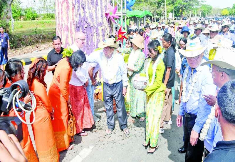 မြန်မာသက္ကရာဇ် ၁၃၈၆ ခုနှစ်၊ မြန်မာ့ရိုးရာမဟာသင်္ကြန်ပွဲတော်ကို မြန်မာမှု၊ မြန်မာ့ဟန်၊ မြန်မာ့ရိုးရာယဉ်ကျေးမှုအစဉ်အလာနှင့်အညီ ယဉ်ကျေးသိမ်မွေ့သည့် သင်္ကြန်၊ အေးချမ်းသာယာသည့် သင်္ကြန်အဖြစ်ကျင်းပ၍ နှစ်သစ်အတာကူးကြမည်ဖြစ်ပြီး ယနေ့တွင်ကျရောက်သည့် မြန်မာ့ရိုးရာမဟာသင်္ကြန်အကြိုနေ့တွင် နေပြည်တော် မြန်မာ့ရိုးရာအေးသင်္ကြန်ကို နေပြည်တော်မြို့တော်ဝန်မဏ္ဍပ်တွင် မြန်မာ့ရိုးရာယဉ်ကျေးမှု အစဉ်အလာနှင့်အညီ ကျင်းပပြုလုပ်ရာ နိုင်ငံတော်စီမံအုပ်ချုပ်ရေးကောင်စီဥက္ကဋ္ဌ နိုင်ငံတော်ဝန်ကြီးချုပ် ဗိုလ်ချုပ်မှူးကြီး မင်းအောင်လှိုင်နှင့် ဇနီးဒေါ်ကြူကြူလှတို့ တက်ရောက်ချီးမြှင့်သည်။