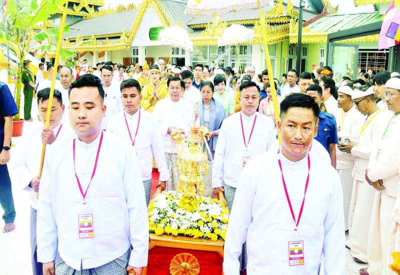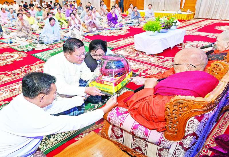 ပြည်ထောင်စုသမ္မတမြန်မာနိုင်ငံတော် နိုင်ငံတော်စီမံအုပ်ချုပ်ရေးကောင်စီက မန္တလေးငလျင်ကြီးလှုပ်ခတ်ခဲ့မှုကြောင့် ပျံလွန်၊ ကွယ်လွန်ခဲ့ကြရသည့် ရဟန်း၊ ရှင်၊ လူ ပြည်သူများအားရည်စူး၍ တစ်လပြည့် နေ့ဆွမ်းဆက်ကပ်လှူဒါန်းပွဲကို ယနေ့နံနက်ပိုင်းတွင် ပြည်ထောင်စုနယ်မြေ နေပြည်တော်၌ ကျင်းပပြုလုပ်သည်။