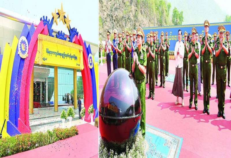 (၇၅)နှစ်မြောက် စိန်ရတုကာကွယ်ရေးပစ္စည်းထုတ်လုပ်မှုတပ်ဖွဲ့နေ့ အခမ်းအနားကို ယနေ့နံနက်ပိုင်းတွင် နေပြည်တော်ကောင်စီနယ်မြေအတွင်းရှိ နယ်မြေခံတပ်ဌာနချုပ်ခန်းမ၌ ကျင်းပပြုလုပ်ရာ နိုင်ငံတော်စီမံအုပ်ချုပ်ရေးကောင်စီဥက္ကဋ္ဌ တပ်မတော်ကာကွယ်ရေးဦးစီးချုပ် ဗိုလ်ချုပ်မှူးကြီး မင်းအောင်လှိုင် တက်ရောက်ချီးမြှင့်သည်။
