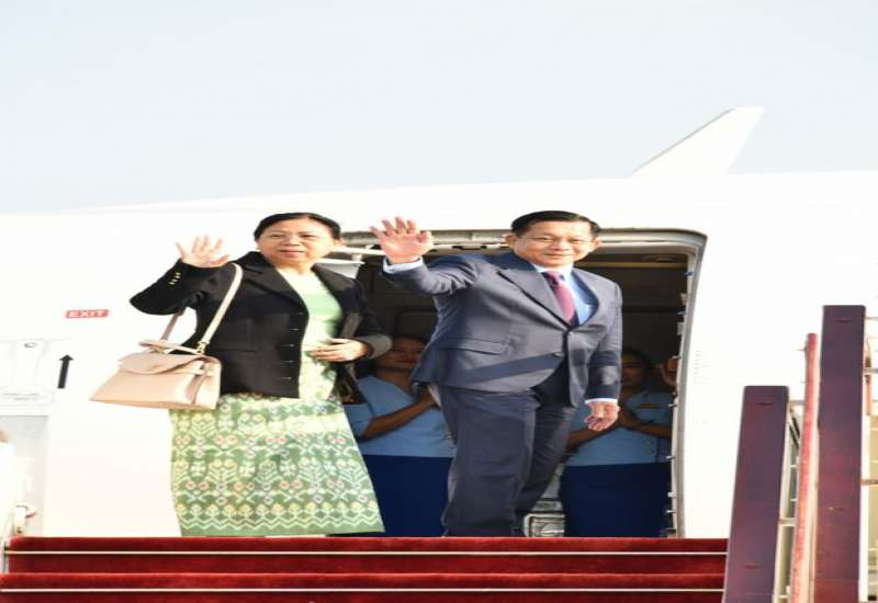 ရုရှားဖက်ဒရေးရှင်းနိုင်ငံသမ္မတ မစ္စတာ ဗလာဒီမာပူတင်၏ ဖိတ်ကြားချက်အရ ရုရှားဖက်ဒရေးရှင်းနိုင်ငံတွင် ကျင်းပပြုလုပ်မည့် ၁၉၄၁-၁၉၄၅ မဟာမျိုးချစ် စစ်ပွဲကြီးအောင်ပွဲ နှစ် (၈၀) ပြည့် အထိမ်းအမှတ် စစ်ရေးပြအခမ်းအနားသို့ တက်ရောက်ရန်အတွက် နိုင်ငံတော်စီမံအုပ်ချုပ်ရေးကောင်စီဥက္ကဋ္ဌ နိုင်ငံတော်ဝန်ကြီးချုပ် ဗိုလ်ချုပ်မှူးကြီး မင်းအောင်လှိုင်နှင့် ဇနီး ဒေါ်ကြူကြူလှ ဦးဆောင်သည့် မြန်မာအဆင့်မြင့် ကိုယ်စားလှယ်အဖွဲ့သည် ယနေ့နံနက်ပိုင်းတွင် အထူးလေယာဉ်ဖြင့် နေပြည်တော်တပ်မတော်လေဆိပ်မှ ထွက်ခွာသည်။