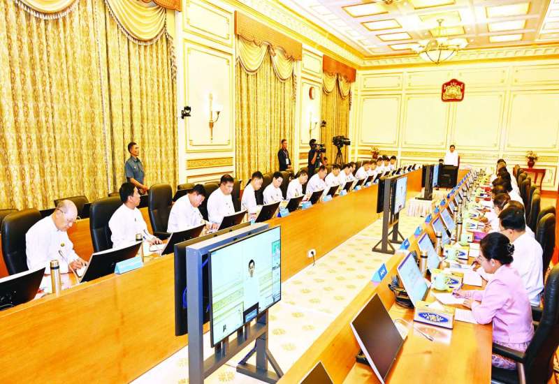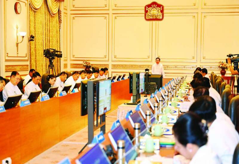 ပြည်ထောင်စုအစိုးရအဖွဲ့အစည်းအဝေးအမှတ်စဉ် (၂/၂၀၂၄)ကို ယနေ့နံနက်ပိုင်းတွင် နေပြည်တော်ရှိ နိုင်ငံတော်စီမံအုပ်ချုပ်ရေးကောင်စီဥက္ကဋ္ဌရုံး အစည်းအဝေးခန်းမ၌ကျင်းပရာ နိုင်ငံတော်စီမံအုပ်ချုပ်ရေးကောင်စီဥက္ကဋ္ဌ နိုင်ငံတော်ဝန်ကြီးချုပ် ဗိုလ်ချုပ်မှူးကြီးမင်းအောင်လှိုင် တက်ရောက်အမှာစကားပြောကြားသည်။