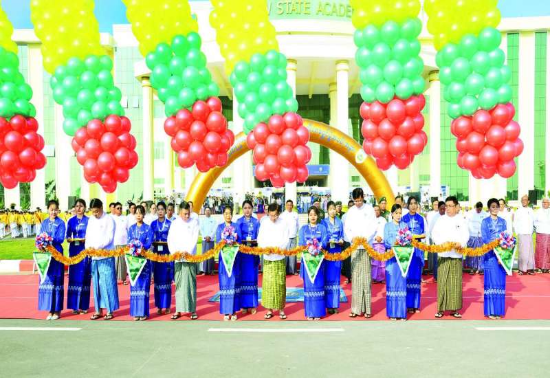 နည်းပညာတက္ကသိုလ်များနှင့် ကွန်ပျူတာတက္ကသိုလ်များ၏ တက္ကသိုလ်ပေါင်းစုံ အားကစားပြိုင်ပွဲ ဘောလုံးပြိုင်ပွဲ ဗိုလ်လုပွဲနှင့်ဆုချီးမြှင့်ခြင်းအခမ်းအနားကို ယနေ့ညနေပိုင်းတွင် နေပြည်တော်ရှိ ဝဏ္ဏသိဒ္ဓိအားကစားကွင်း၌ ကျင်းပပြုလုပ်ရာ နိုင်ငံတော်စီမံအုပ်ချုပ်ရေးကောင်စီဥက္ကဋ္ဌ နိုင်ငံတော်ဝန်ကြီးချုပ် ဗိုလ်ချုပ်မှူးကြီးမင်းအောင်လှိုင် တက်ရောက်ကြည့်ရှုအားပေးပြီး ဆုများပေးအပ်ချီးမြှင့်သည်။