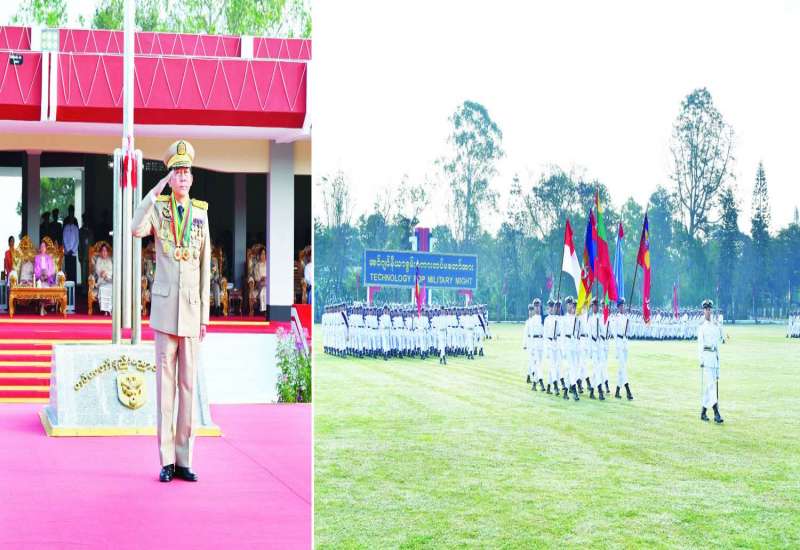 တပ်မတော်နည်းပညာတက္ကသိုလ် ဗိုလ်လောင်းသင်တန်းအမှတ်စဉ်(၂၅) သင်တန်းဆင်း ဂုဏ်ပြုစစ်ရေးပြအခမ်းအနားကို ယနေ့နံနက်ပိုင်းတွင် ပြင်ဦးလွင်မြို့ တပ်မတော်နည်းပညာတက္ကသိုလ် စစ်ရေးပြကွင်း၌ ကျင်းပပြုလုပ်ရာ နိုင်ငံတော်စီမံအုပ်ချုပ်ရေးကောင်စီဥက္ကဋ္ဌ တပ်မတော်ကာကွယ်ရေးဦးစီးချုပ် ဗိုလ်ချုပ်မှူးကြီး သတိုးမဟာသရေစည်သူ သတိုးသီရိသုဓမ္မ မင်းအောင်လှိုင် တက်ရောက်မိန့်ခွန်း ပြောကြားသည်။