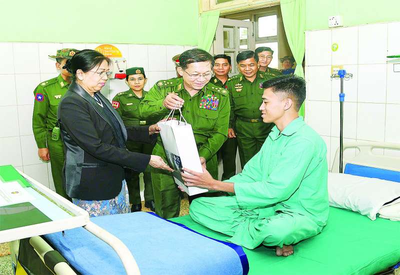 နိုင်ငံတော်စီမံအုပ်ချုပ်ရေးကောင်စီဥက္ကဋ္ဌ တပ်မတော်ကာကွယ်ရေးဦးစီးချုပ် ဗိုလ်ချုပ်မှူးကြီး မင်းအောင်လှိုင်သည် ဇနီး ဒေါ်ကြူကြူလှ၊ ညှိနှိုင်းကွပ်ကဲရေးမှူး (ကြည်း၊ ရေ၊ လေ) ဗိုလ်ချုပ်ကြီး မောင်မောင်အေးနှင့် ဇနီး၊ ကာကွယ်ရေးဦးစီးချုပ် (ရေ) ဗိုလ်ချုပ်ကြီး မိုးအောင်နှင့် ဇနီး၊ ကာကွယ်ရေးဦးစီးချုပ် (လေ) ဗိုလ်ချုပ်ကြီး ထွန်းအောင်နှင့် ဇနီး၊ ကာကွယ်ရေးဦးစီးချုပ်ရုံးမှ အဆင့်မြင့် တပ်မတော်အရာရှိကြီးများနှင့် ဇနီးများ လိုက်ပါ၍ ယနေ့နံနက်ပိုင်းတွင် ရှမ်းပြည်နယ် (မြောက်ပိုင်း) လားရှိုးမြို့ရှိ နယ်မြေခံတပ်မတော်ဆေးရုံ၌ တက်ရောက်ကုသမှုခံယူလျက်ရှိသည့် နိုင်ငံတော်ကာကွယ်ရေးနှင့် လုံခြုံရေးတာဝန်များ ထမ်းဆောင်စဉ် ထိခိုက်ဒဏ်ရာရရှိခဲ့သော အရာရှိ၊ စစ်သည်များ၊ မြန်မာနိုင်ငံရဲတပ်ဖွဲ့ ဝင်များအား သွားရောက်ကြည့်ရှု အားပေးစကားပြောကြားသည်။
