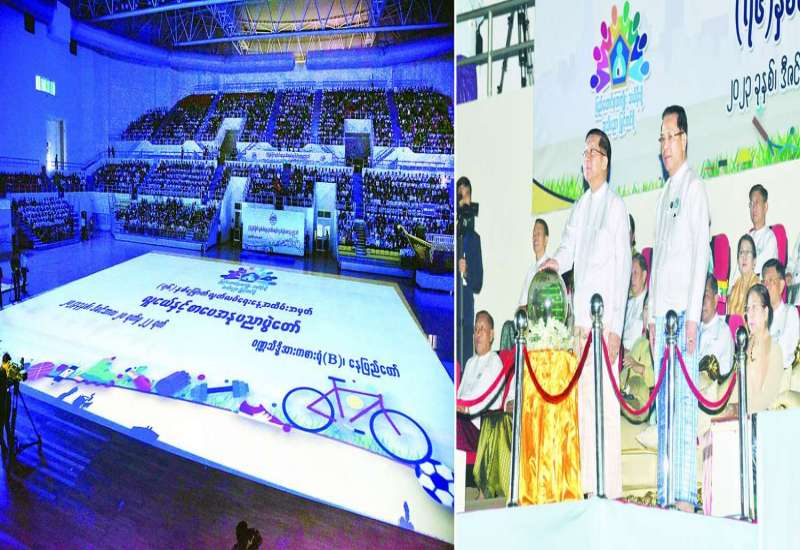 (၇၆) နှစ်မြောက် လွတ်လပ်ရေးနေ့အထိမ်းအမှတ် လူငယ်နှင့် စာပေအနုပညာပွဲတော် ဖွင့်ပွဲအခမ်းအနားကို ယနေ့နံနက်ပိုင်းတွင် နေပြည်တော်ရှိ ဝဏ္ဏသိဒ္ဓိအားကစားကွင်း (B) ရုံ၌ကျင်းပရာ နိုင်ငံတော်စီမံအုပ်ချုပ်ရေးကောင်စီဥက္ကဋ္ဌ နိုင်ငံတော်ဝန်ကြီးချုပ် ဗိုလ်ချုပ်မှူးကြီး မင်းအောင်လှိုင် တက်ရောက်ဖွင့်လှစ်ပေးပြီး အမှာစကားပြောကြားသည်။(၇၆) နှစ်မြောက် လွတ်လပ်ရေးနေ့အထိမ်းအမှတ် လူငယ်နှင့် စာပေအနုပညာပွဲတော် ဖွင့်ပွဲအခမ်းအနားကို ယနေ့နံနက်ပိုင်းတွင် နေပြည်တော်ရှိ ဝဏ္ဏသိဒ္ဓိအားကစားကွင်း (B) ရုံ၌ကျင်းပရာ နိုင်ငံတော်စီမံအုပ်ချုပ်ရေးကောင်စီဥက္ကဋ္ဌ နိုင်ငံတော်ဝန်ကြီးချုပ် ဗိုလ်ချုပ်မှူးကြီး မင်းအောင်လှိုင် တက်ရောက်ဖွင့်လှစ်ပေးပြီး အမှာစကားပြောကြားသည်။