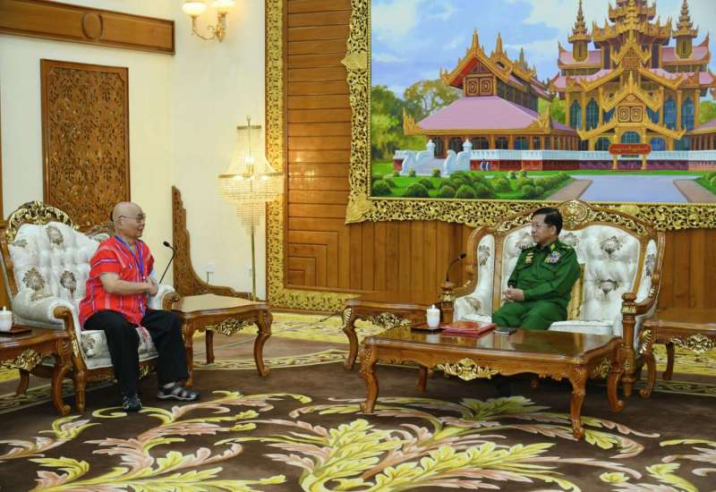 နိုင်ငံတော်စီမံအုပ်ချုပ်ရေးကောင်စီဥက္ကဋ္ဌ တပ်မတော်ကာကွယ်ရေးဦးစီးချုပ် ဗိုလ်ချုပ်မှူးကြီး မင်းအောင်လှိုင်သည် ကရင်တိုင်းရင်းသားခေါင်းဆောင်စောမူတူးစေးဖိုး ဦးဆောင်သည့်အဖွဲ့အား ယနေ့နံနက်ပိုင်းတွင် နေပြည်တော်ရှိ ဘုရင့်နောင်ရိပ်သာ ဧည့်ခန်းမဆောင်၌ လက်ခံတွေ့ဆုံပြီး ငြိမ်းချမ်းရေး ဆိုင်ရာကိစ္စရပ်များ ဆွေးနွေးသည်။