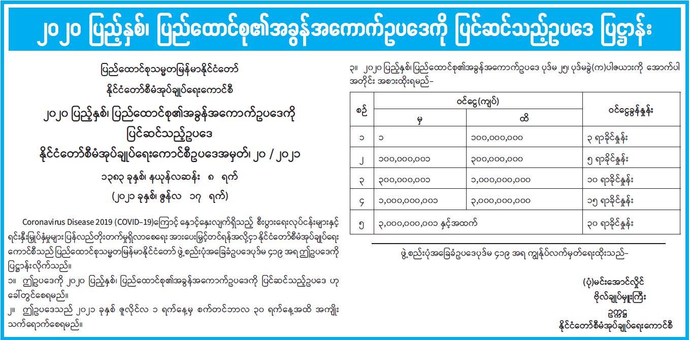 ၂၀၂၀ ပြည့်နှစ်၊ ပြည်ထောင်စု၏ အခွန်အကောက်ဥပဒေကို ပြင်ဆင်သည့်ဥပဒေ ပြဋ္ဌာန်း