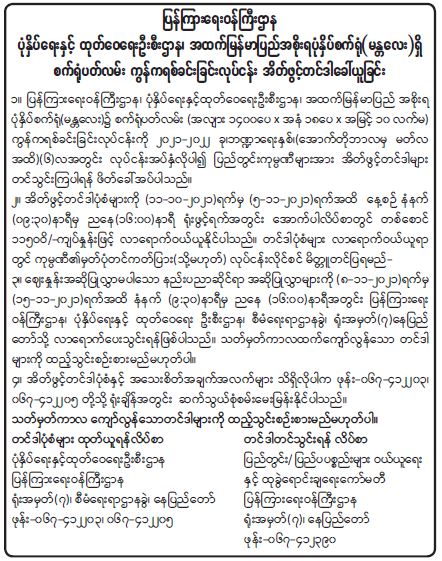 ပုံနှိပ်ရေးနှင့် ထုတ်ဝေရေးဦးစီးဌာန၊ အထက်မြန်မာပြည်အစိုးရပုံနှိပ်စက်ရုံ(မန္တလေး)ရှိ စက်ရုံပတ်လမ်း ကွန်ကရစ်ခင်းခြင်းလုပ်ငန်း အိတ်ဖွင့်တင်ဒါခေါ်ယူခြင်း