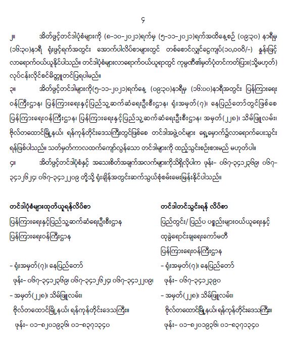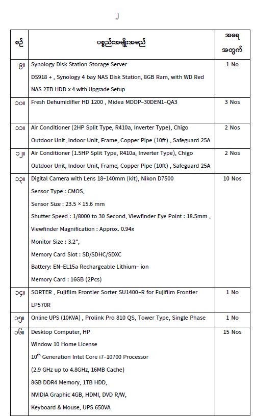 ပြန်ကြားရေးနှင့်ပြည်သူ့ဆက်ဆံရေးဦးစီးဌာန အခြားရုံးသုံးပစ္စည်းနှင့် ရုံးသုံးစက်ကိရိယာများဝယ်ယူရန် အိတ်ဖွင့်တင်ဒါခေါ်ယူခြင်း