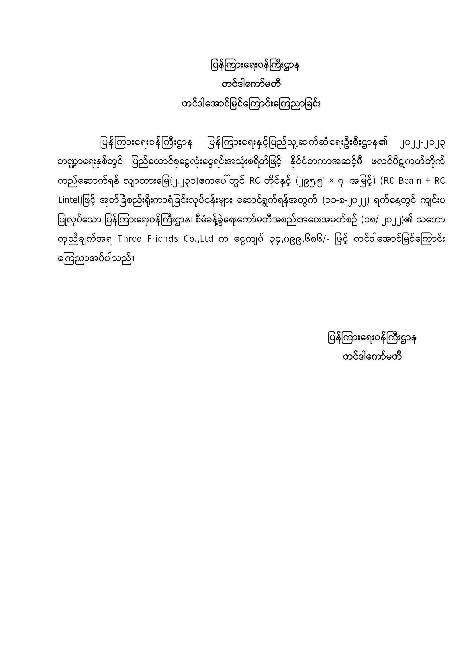တင်ဒါအောင်မြင်ကြောင်းကြေညာခြင်း