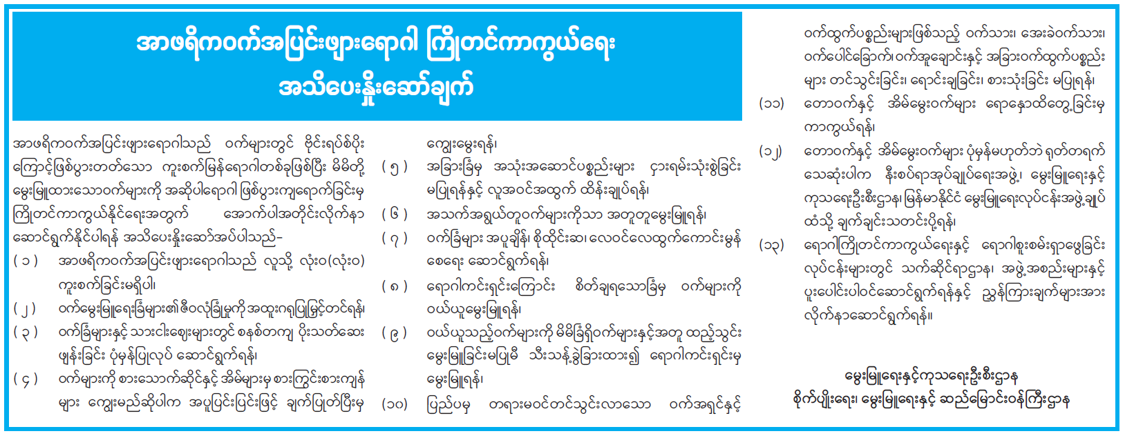 အာဖရိကဝက်အပြင်းဖျားရောဂါ ကြိုတင်ကာကွယ်ရေး အသိပေးနှိုးဆော်ချက်
