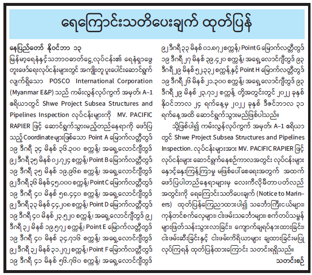 ရေကြောင်းသတိပေးချက် ထုတ်ပြန်