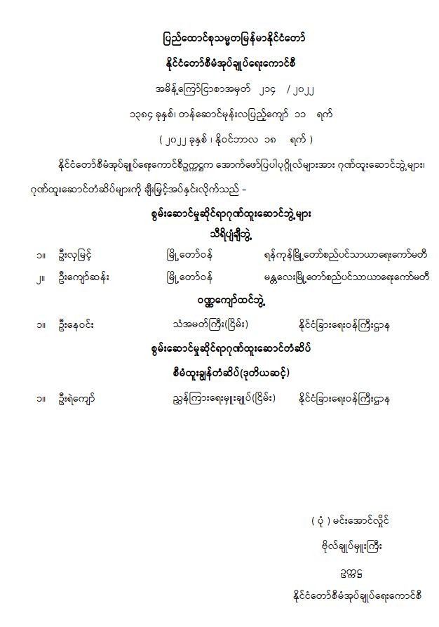 ပြည်ထောင်စုသမ္မတမြန်မာနိုင်ငံတော် နိုင်ငံတော်စီမံအုပ်ချုပ်ရေးကောင်စီ အမိန့်ကြော်ငြာစာအမှတ် ၂၁၄ / ၂၀၂၂ ၁၃၈၄ ခုနှစ်၊ တန်ဆောင်မုန်းလပြည့်ကျော် ၁၁ ရက် ( ၂၀၂၂ ခုနှစ် ၊ နိုဝင်ဘာလ ၁၈ ရက် )
