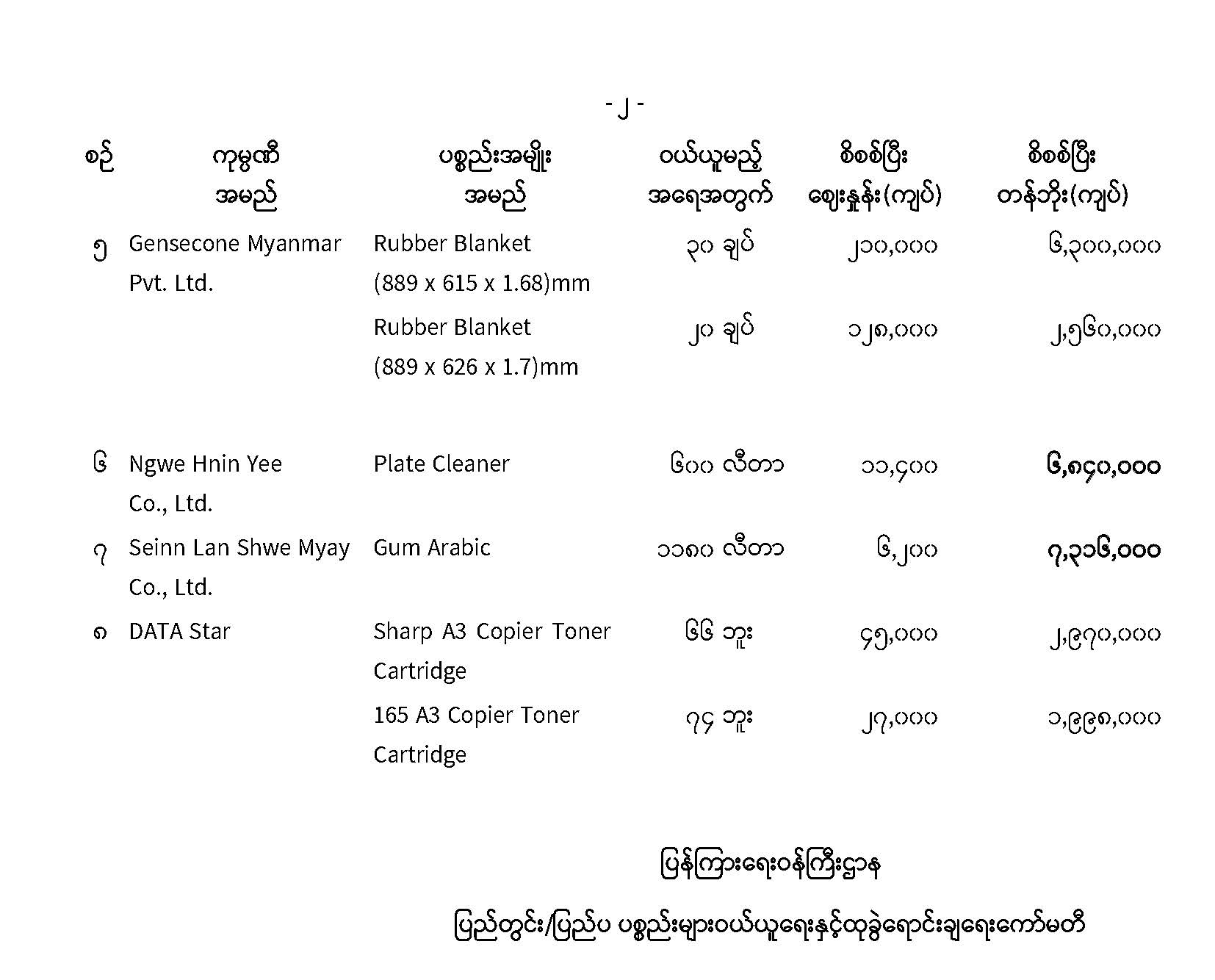 ပြန်ကြားရေးဝန်ကြီးဌာန ပြည်တွင်း/ပြည်ပ ပစ္စည်းများဝယ်ယူရေးနှင့်ထုခွဲရောင်းချရေးကော်မတီ တင်ဒါအောင်မြင်ကြောင်း ကြေညာခြင်း 06/13/2023 ပြန်ကြားရေးဝန်ကြီးဌာန ပြည်တွင်း/ပြည်ပ ပစ္စည်းများဝယ်ယူရေးနှင့်ထုခွဲရောင်းချရေးကော်မတီ တင်ဒါအောင်မြင်ကြောင်း ကြေညာခြင်း