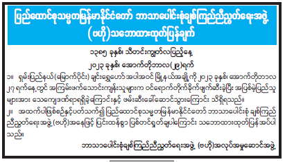 ပြည်ထောင်စုသမ္မတမြန်မာနိုင်ငံတော် ဘာသာပေါင်းစုံချစ်ကြည်ညီညွတ်ရေးအဖွဲ့(ဗဟို) သဘောထားထုတ်ပြန်ချက် 10/30/2023 ပြည်ထောင်စုသမ္မတမြန်မာနိုင်ငံတော် ဘာသာပေါင်းစုံချစ်ကြည်ညီညွတ်ရေးအဖွဲ့(ဗဟို) သဘောထားထုတ်ပြန်ချက်