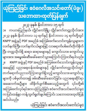 ဝန်ကြီးဌာန ကြေညာချက်များ