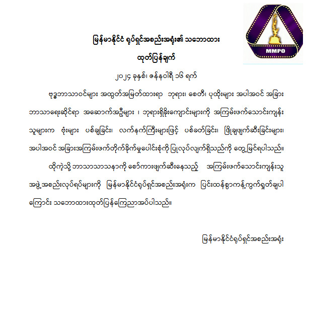 မြန်မာနိုင်ငံ ရုပ်ရှင်အစည်းအရုံး၏ သဘောထားထုတ်ပြန်ချက်