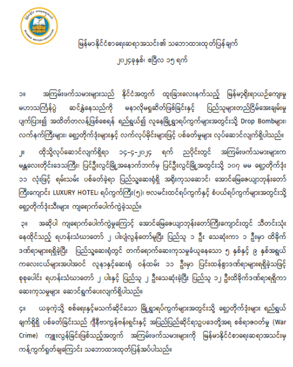 မြန်မာနိုင်ငံ စာရေးဆရာအသင်း၏ သဘောထားထုတ်ပြန်ချက်
