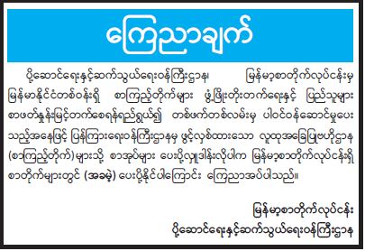 ဝန်ကြီးဌာန ကြေညာချက်များ