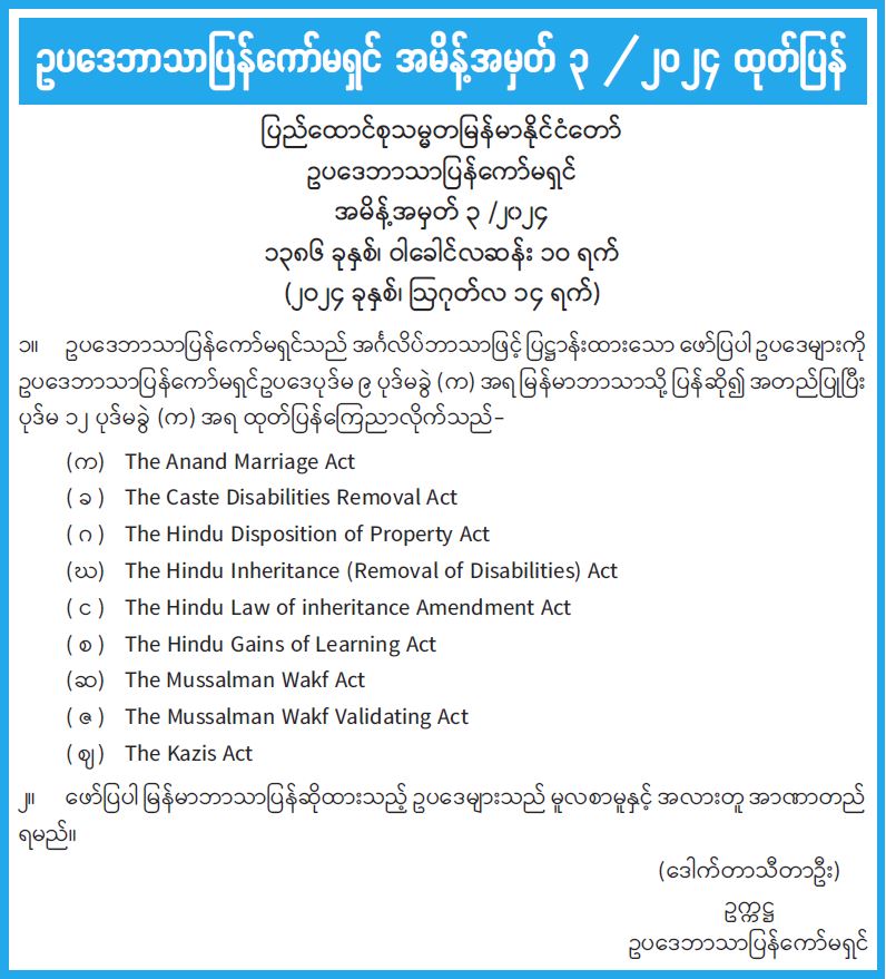 ဥပဒေဘာသာပြန်ကော်မရှင် အမိန့်အမှတ် ၃ /၂၀၂၄ ထုတ်ပြန်
