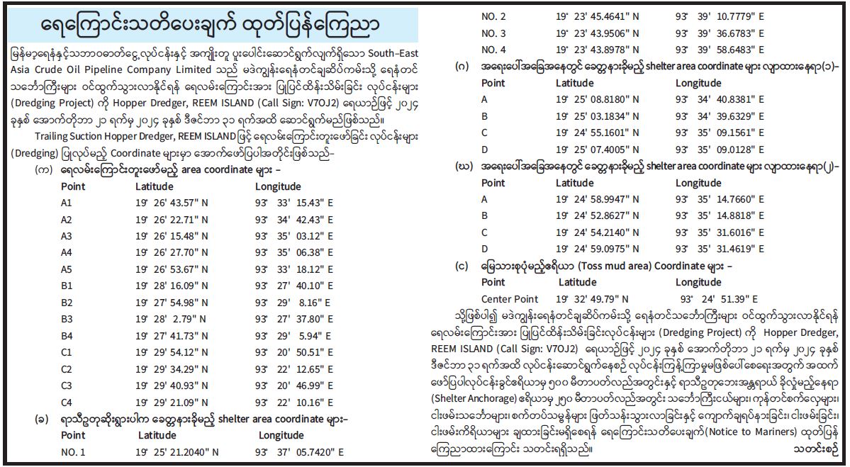 ရေကြောင်းသတိပေးချက် ထုတ်ပြန်ကြေညာ