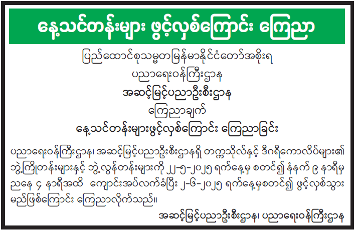 နေ့သင်တန်းများ ဖွင့်လှစ်ကြောင်း ကြေညာ