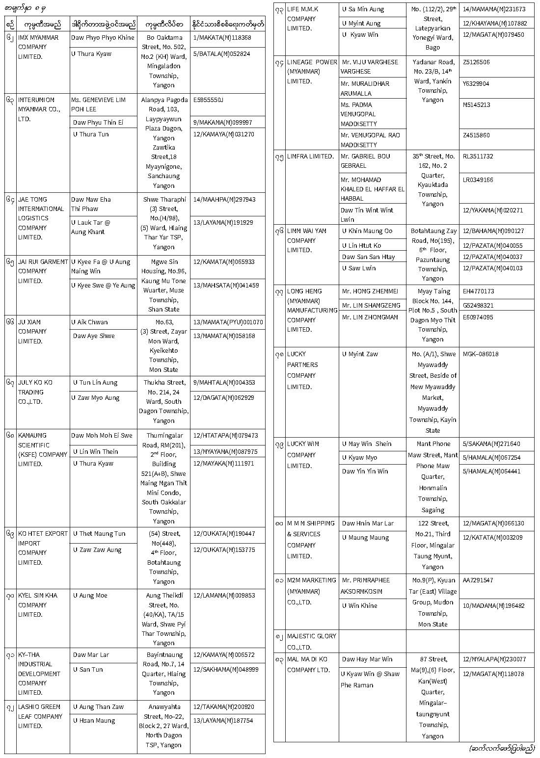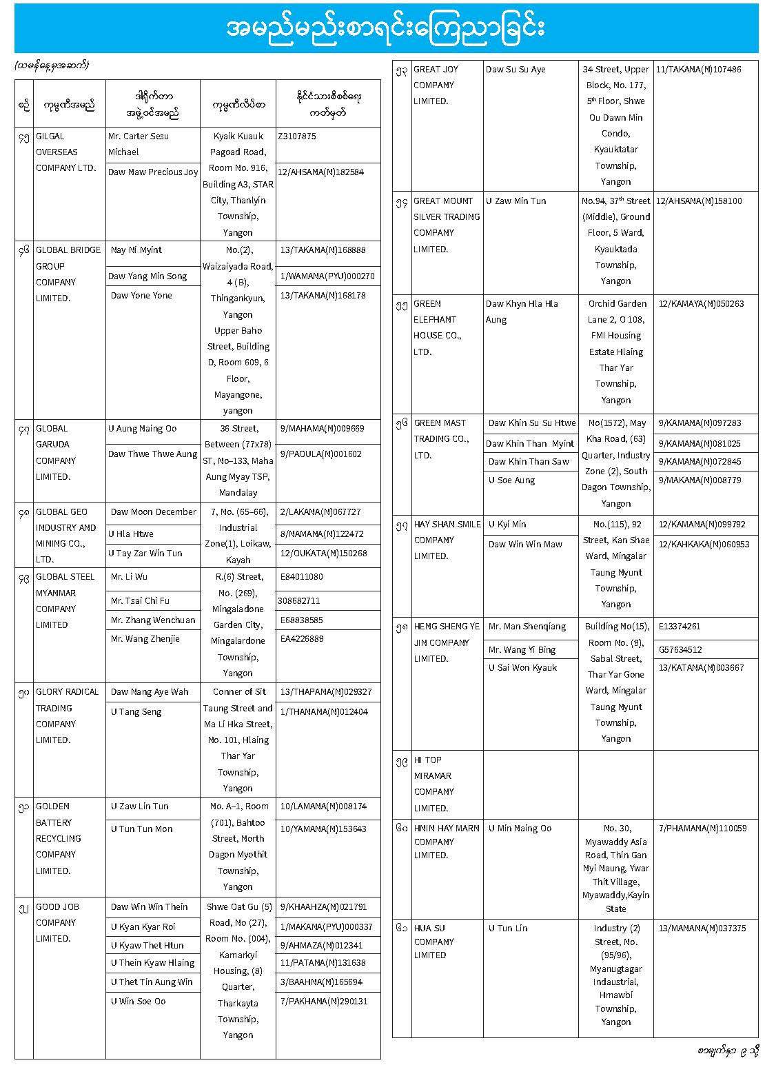 ဦးစီးဌာနနှင့် လုပ်ငန်းများ၏ ကြေညာချက်များ
