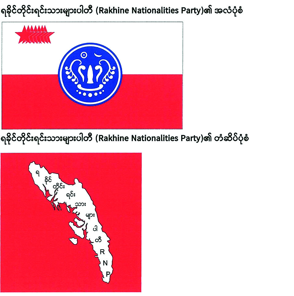 ၁။ ရခိုင်ပြည်နယ်၊ ကျောက်ဖြူမြို့၊ အလယ်ပိုင်းရပ်ကွက်၊ ဦးဥတ္တမလမ်း၊ အမှတ် (၄၉) တွင် ပါတီရုံးချုပ်တည်ရှိသော ရခိုင်တိုင်းရင်းသားများပါတီ (Rakhine Nationalities Party) က နိုင်ငံရေးပါတီများ မှတ်ပုံတင်ခြင်းဥပဒေ ပုဒ်မ ၅ အရ နိုင်ငံရေးပါတီအဖြစ် မှတ်ပုံတင်ခွင့်ပြုရန် ၂၄-၆-၂၀၂၅ ရက်နေ့တွင် လျှောက်ထားလာပါသည်။ ယင်းသို့ လျှောက်ထားရာတွင် ပါတီအမည်၊ အလံနှင့် တံဆိပ်တို့ကို ဖော်ပြပါအတိုင်း အသုံးပြုမည်ဖြစ်ကြောင်း တင်ပြလာပါသည်။
