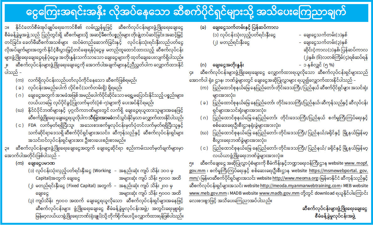 ငွေကြေးအရင်းအနှီး လိုအပ်နေသော ဆီစက်ပိုင်ရှင်များသို့ အသိပေးကြေညာချက်