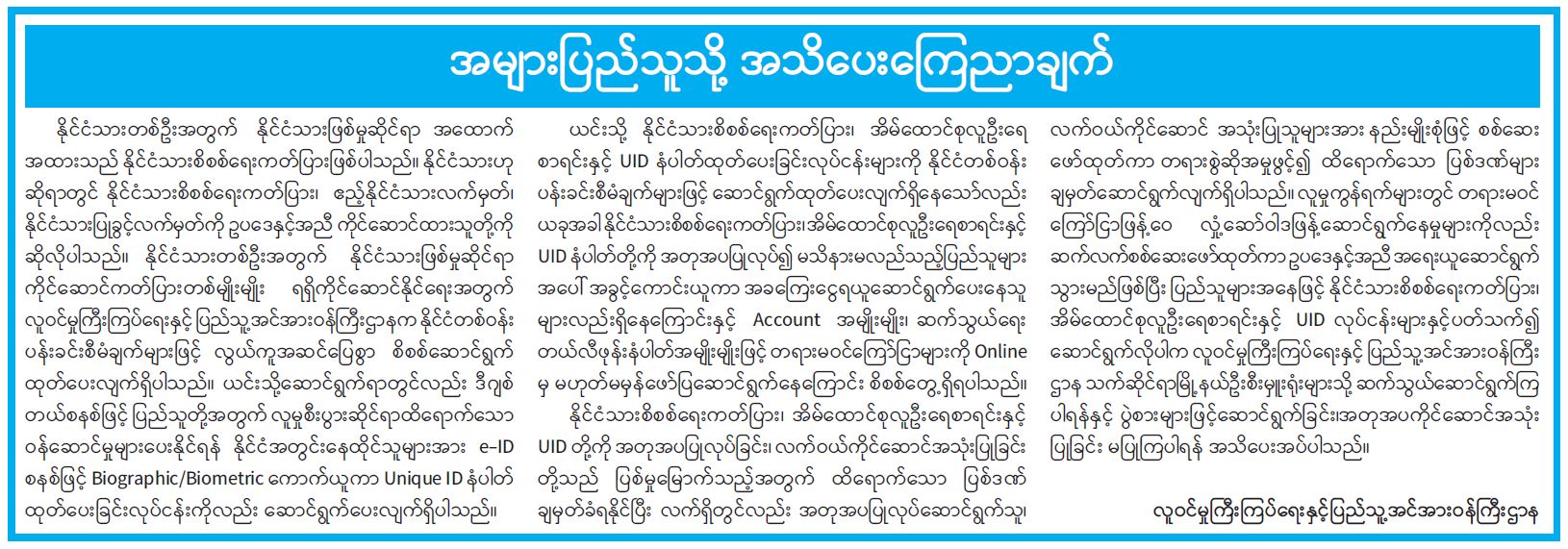 အများပြည်သူသို့ အသိပေးကြေညာချက်