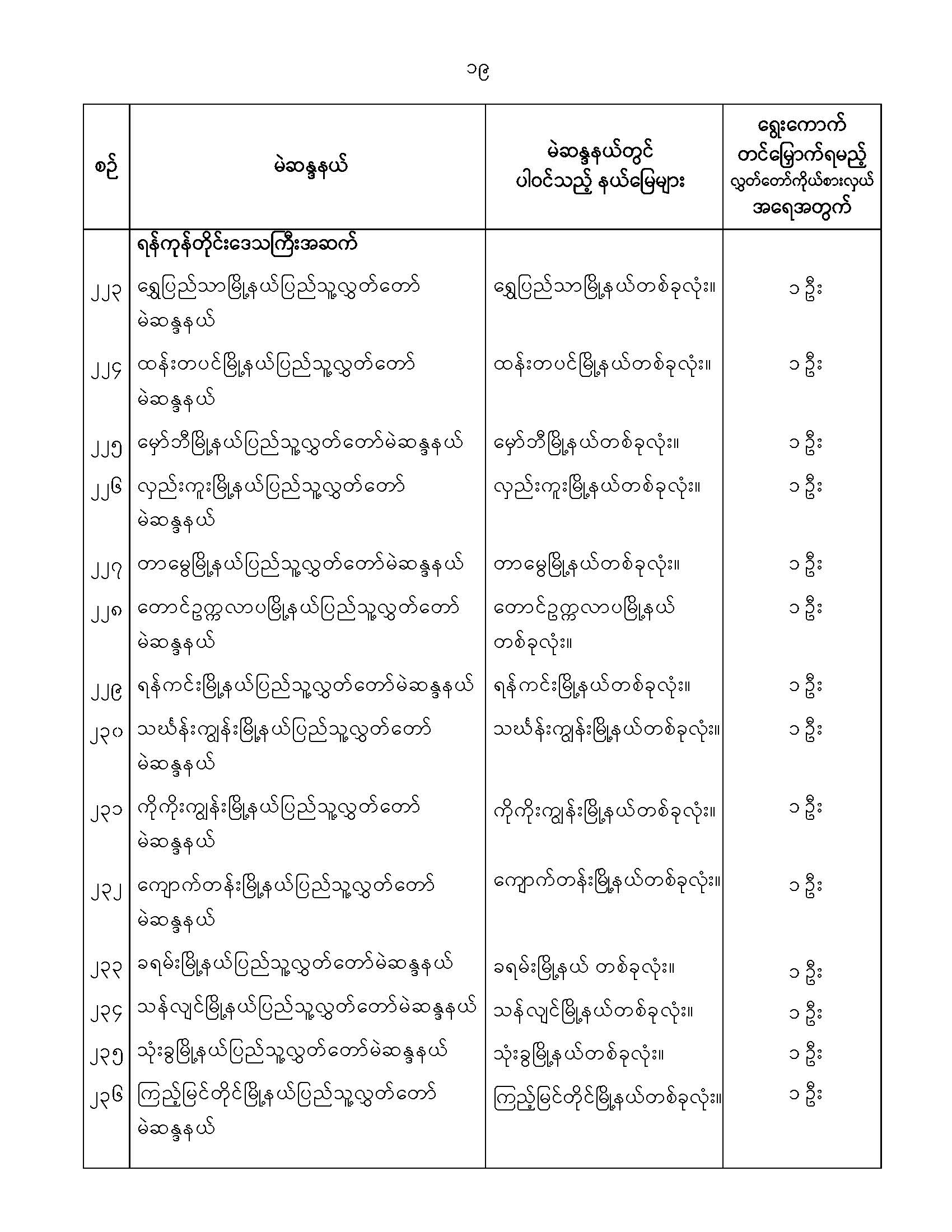 ဝန်ကြီးဌာန ကြေညာချက်များ