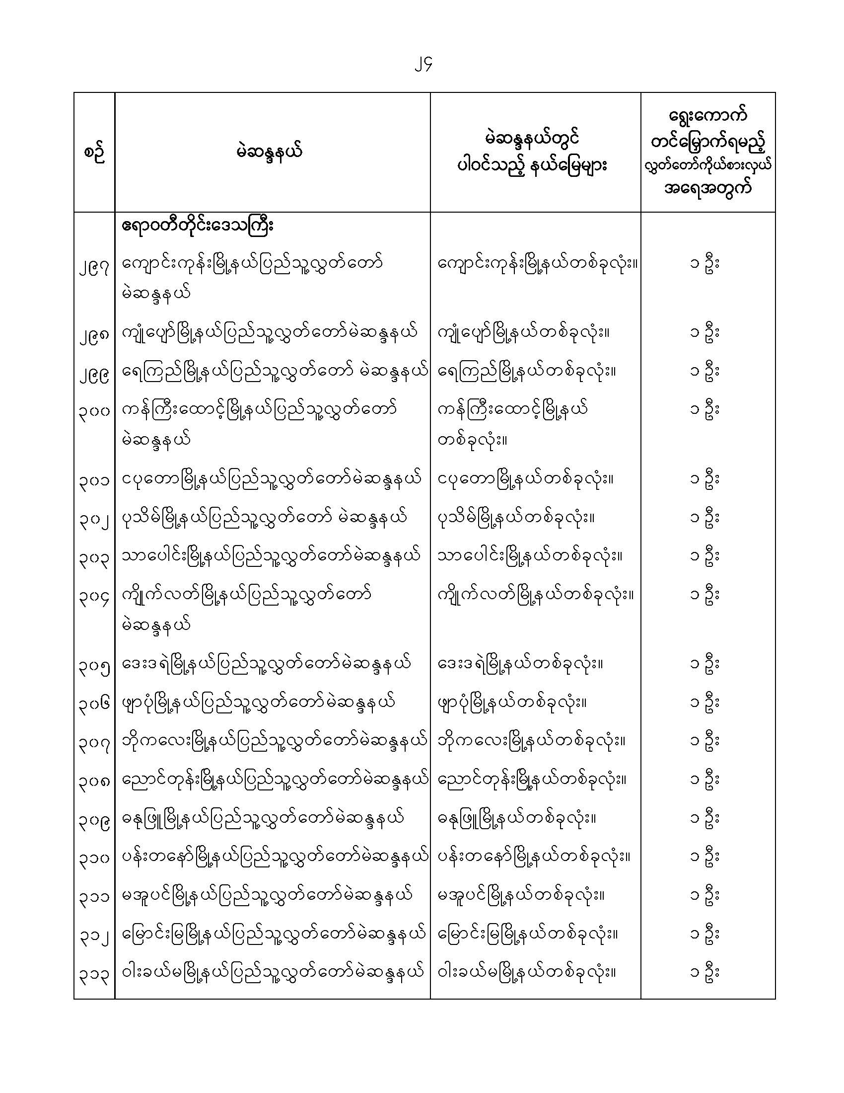 ပြည်သူ့လွှတ်တော်မဲဆန္ဒနယ်များ သတ်မှတ်ကြေညာခြင်း