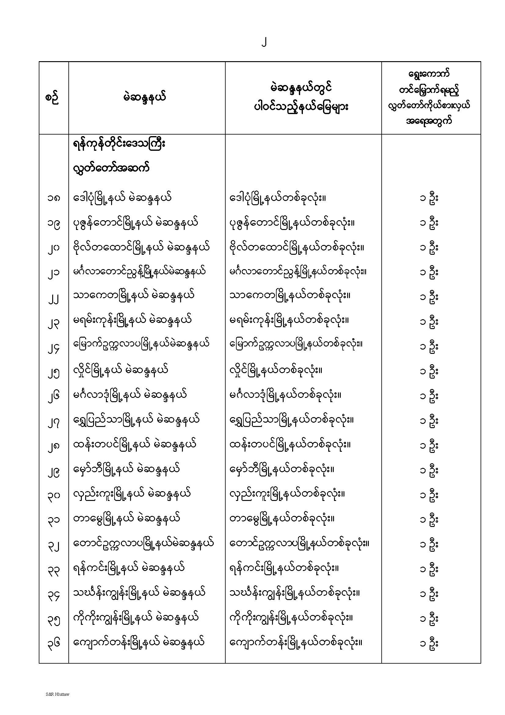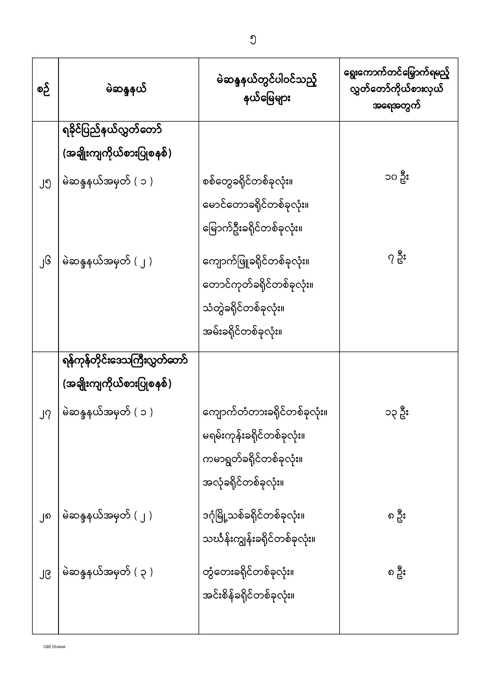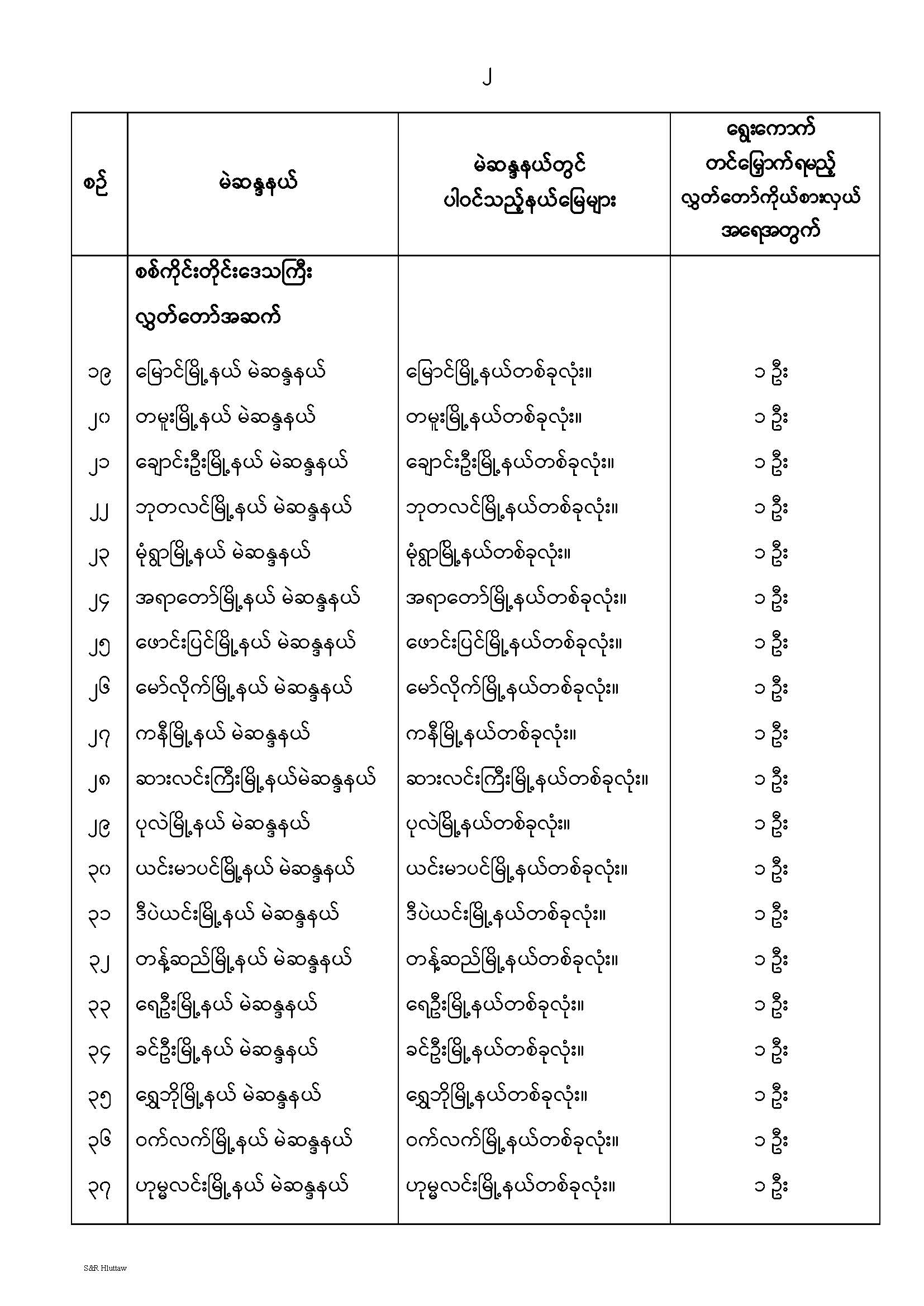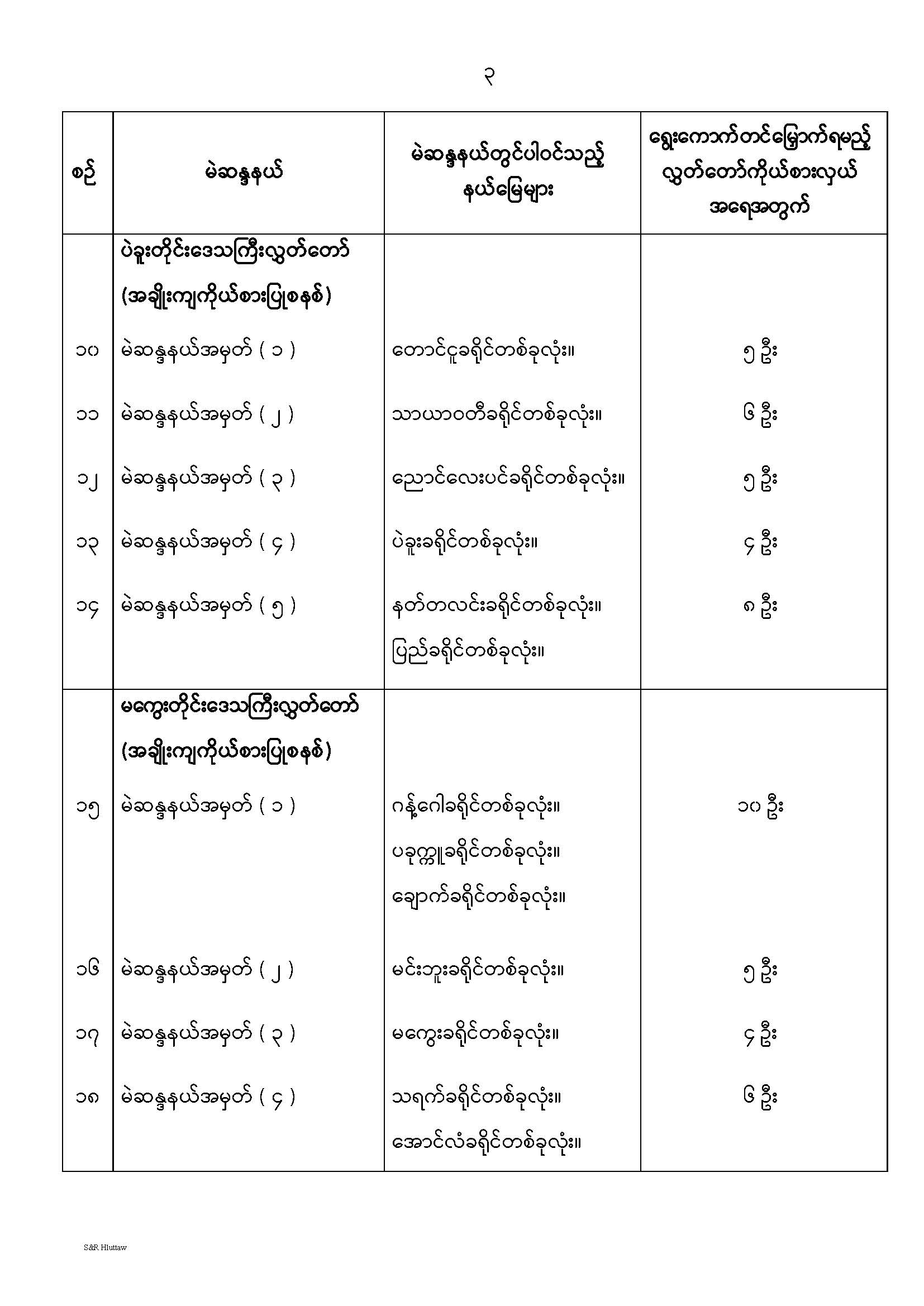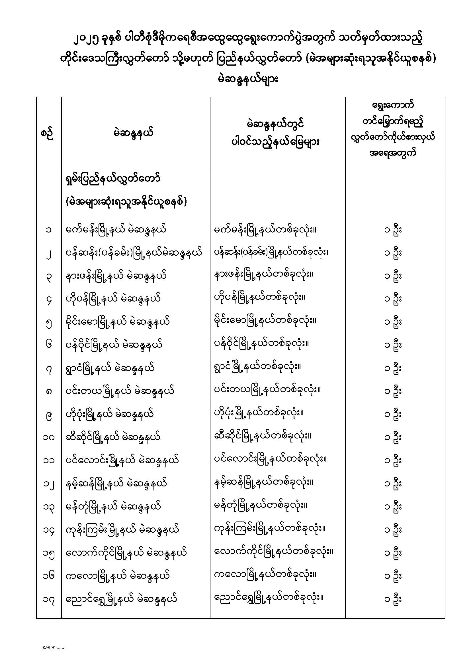 တိုင်းဒေသကြီးလွှတ်တော် သို့မဟုတ် ပြည်နယ်လွှတ်တော် မဲဆန္ဒနယ်များ သတ်မှတ်ကြေညာခြင်း
