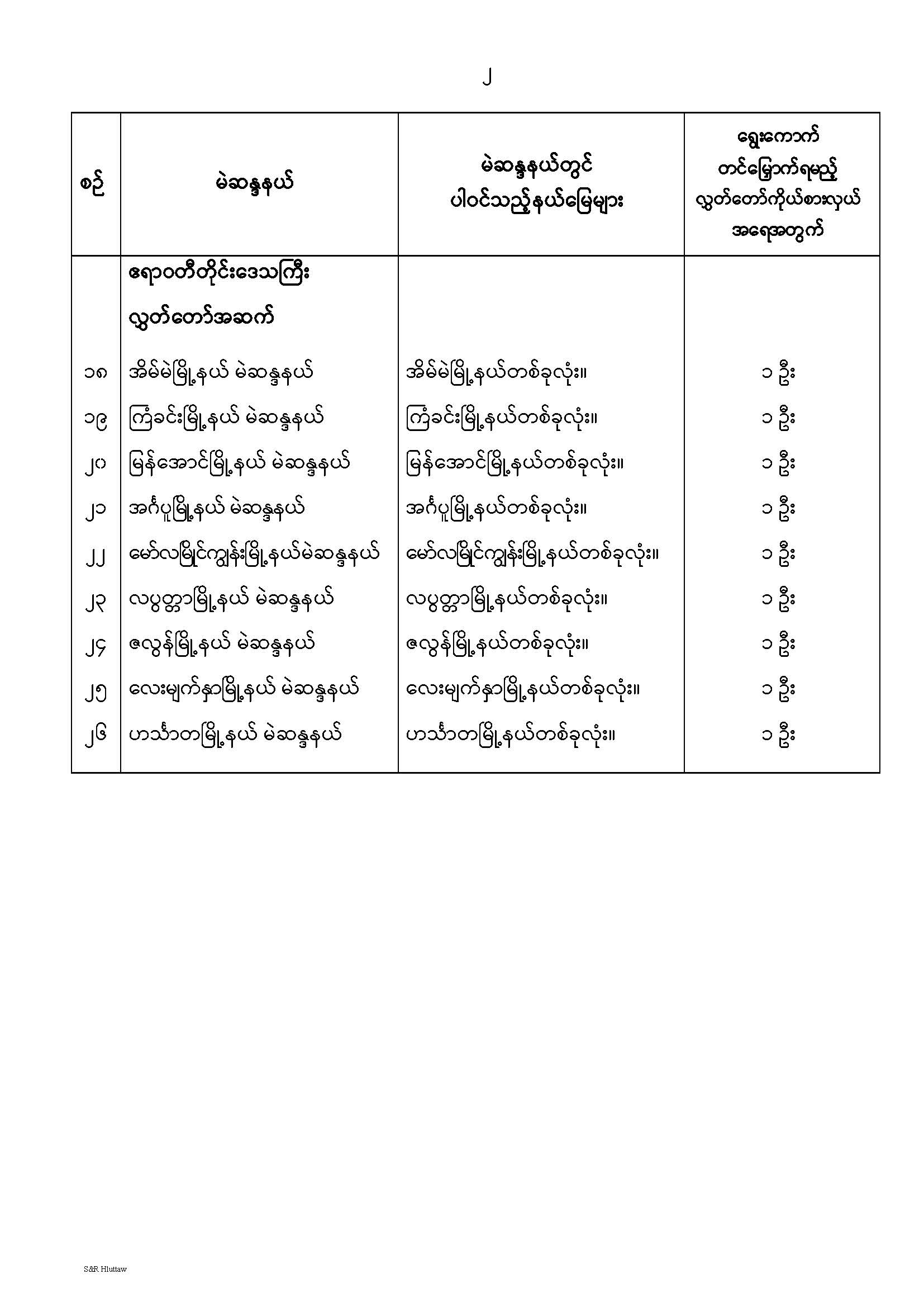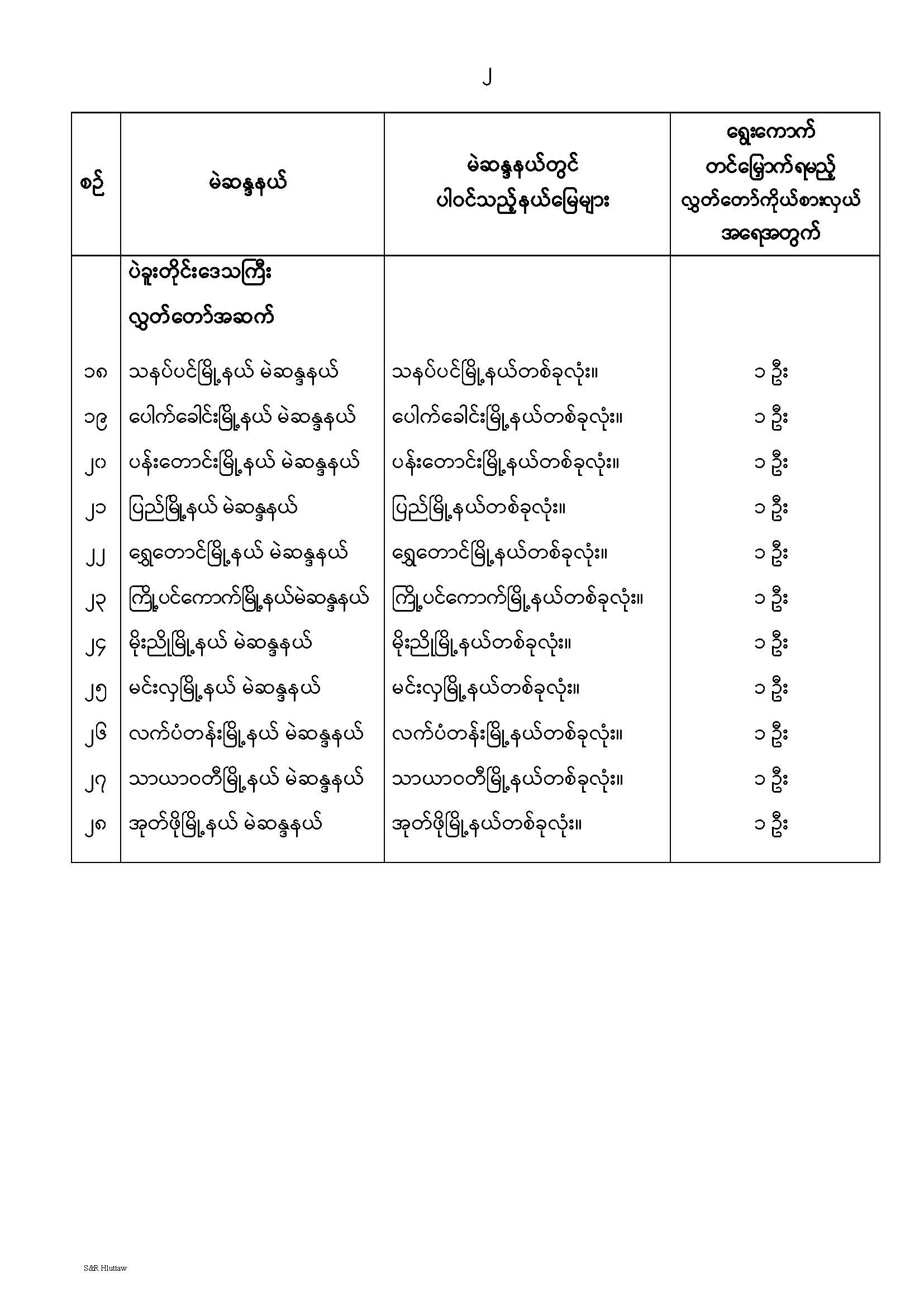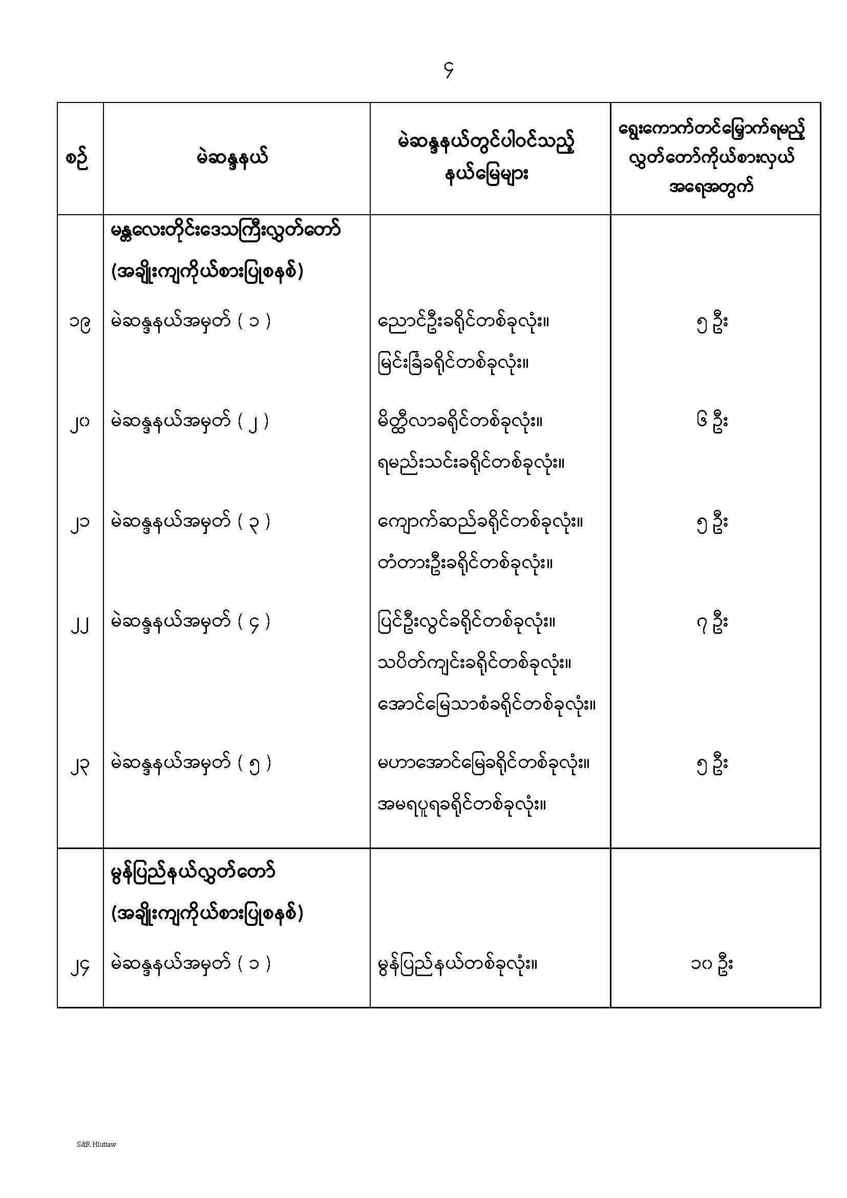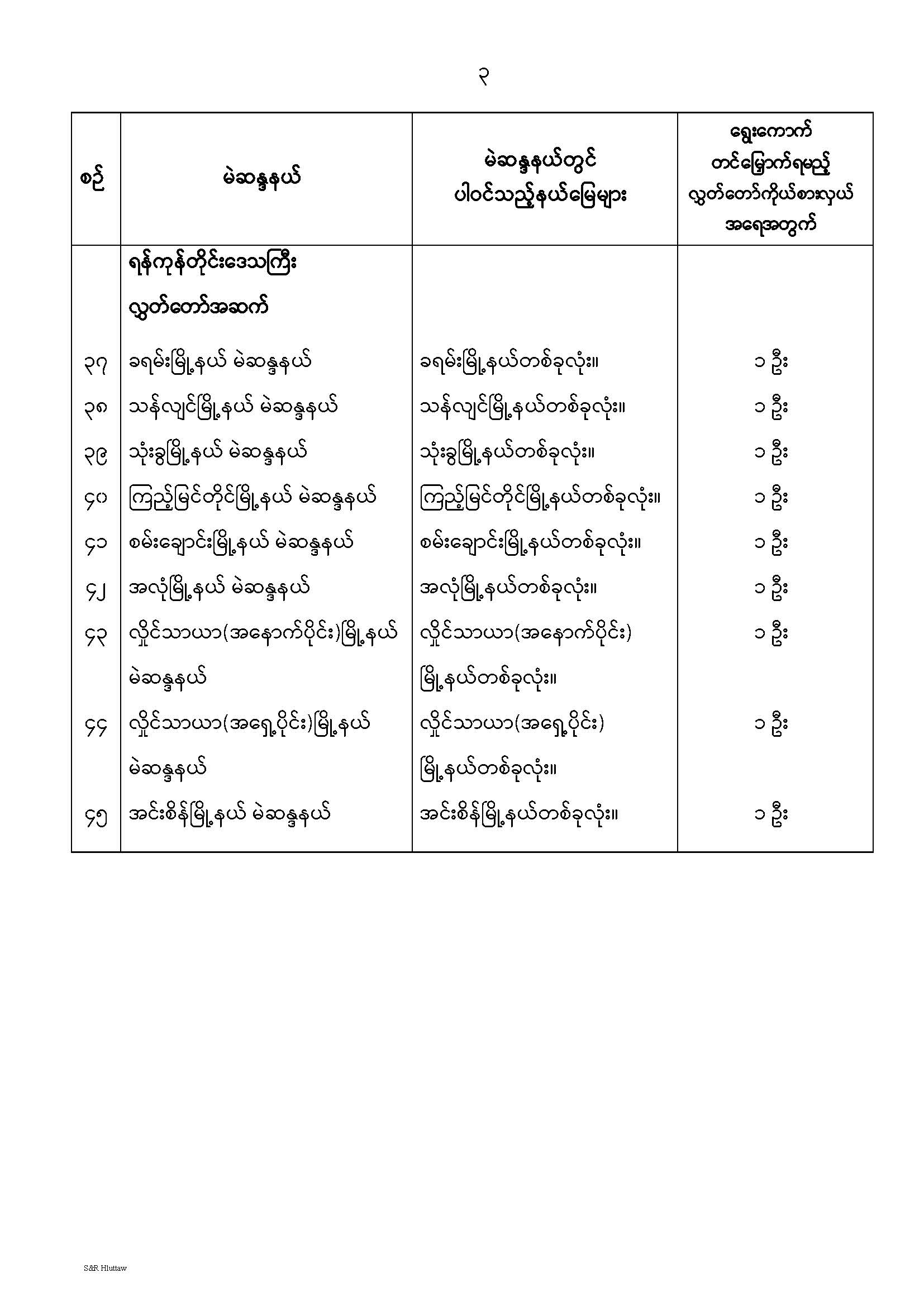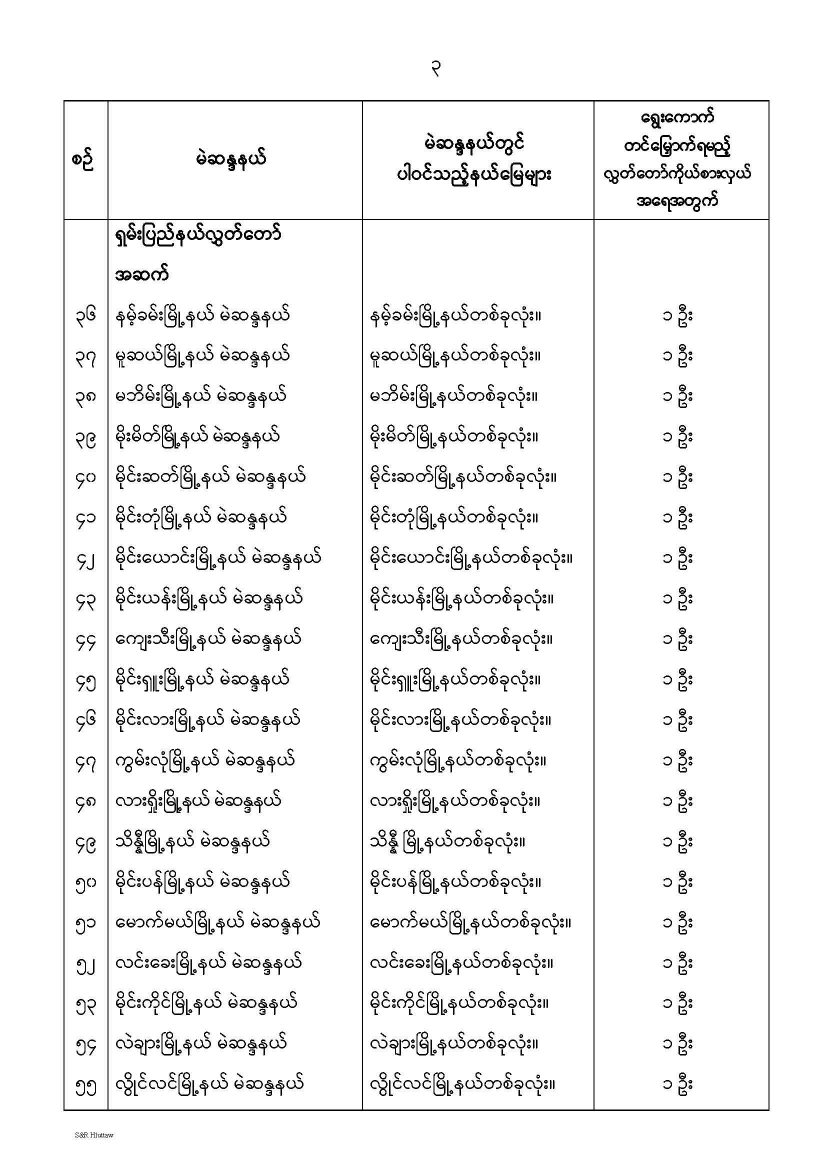 တိုင်းဒေသကြီးလွှတ်တော် သို့မဟုတ် ပြည်နယ်လွှတ်တော် မဲဆန္ဒနယ်များ သတ်မှတ်ကြေညာခြင်း