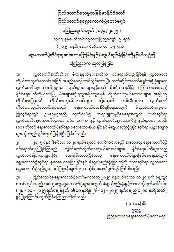 ရွေးကောက်ပွဲဆိုင်ရာစုဝေးဟောပြောခြင်းနှင့် မဲဆွယ်စည်းရုံးခြင်းတို့နှင့်စပ်လျဉ်း၍ ကြေညာချက်ထုတ်ပြန်ခြင်း 10/15/2025