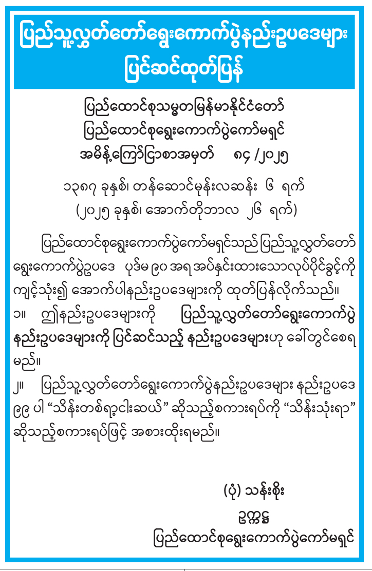 ပြည်သူ့လွှတ်တော်ရွေးကောက်ပွဲနည်းဥပဒေများ ပြင်ဆင်ထုတ်ပြန်