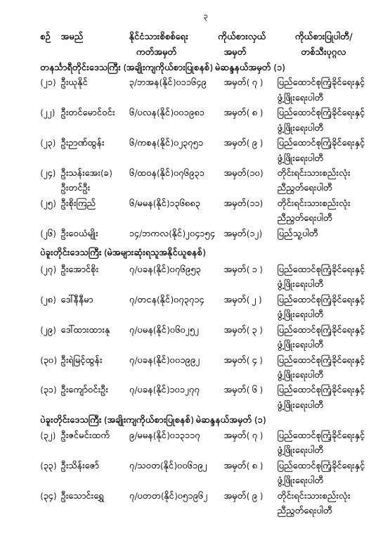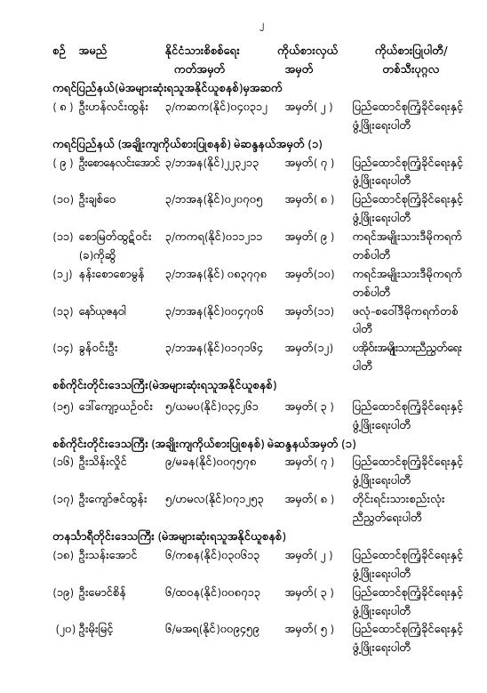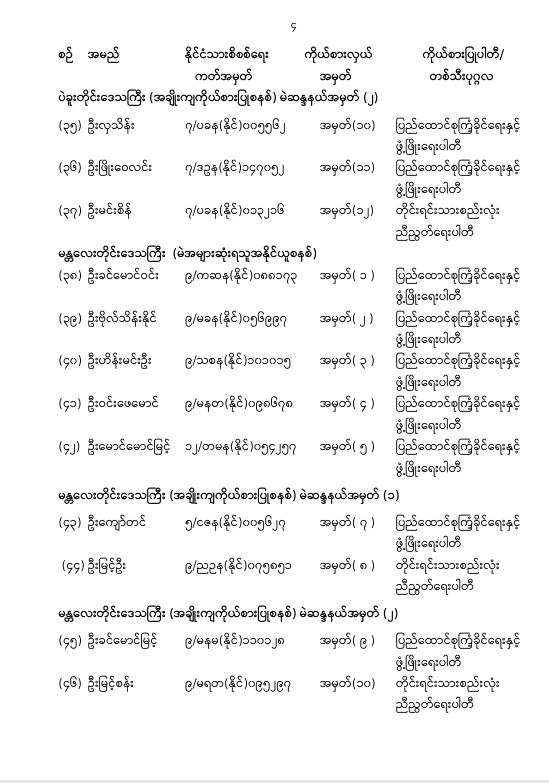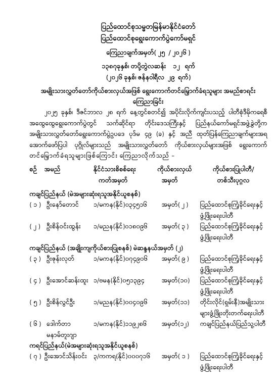 အမျိုးသားလွှတ်တော်ကိုယ်စားလှယ်အဖြစ် ရွေးကောက်တင်မြှောက်ခံရသူများ အမည်စာရင်း ကြေညာခြင်း
